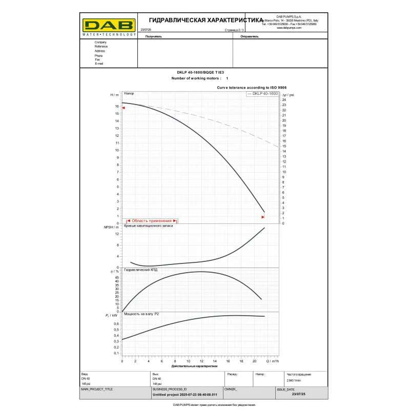 Циркуляционный насос ин-лайн DAB DKLP 40-1600/BQQE T 750 Вт H 16 м Q 358 л/мин механический (60214770)