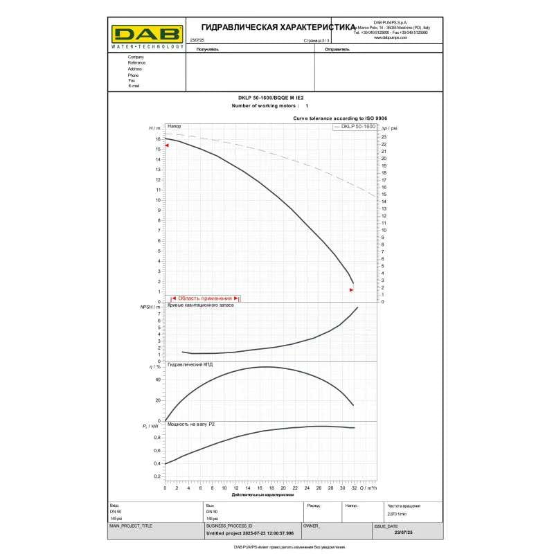 Циркуляционный насос ин-лайн DAB DKLP 50-1600/BQQE M 1400 Вт H 16 м Q 530 л/мин механический (60211888)