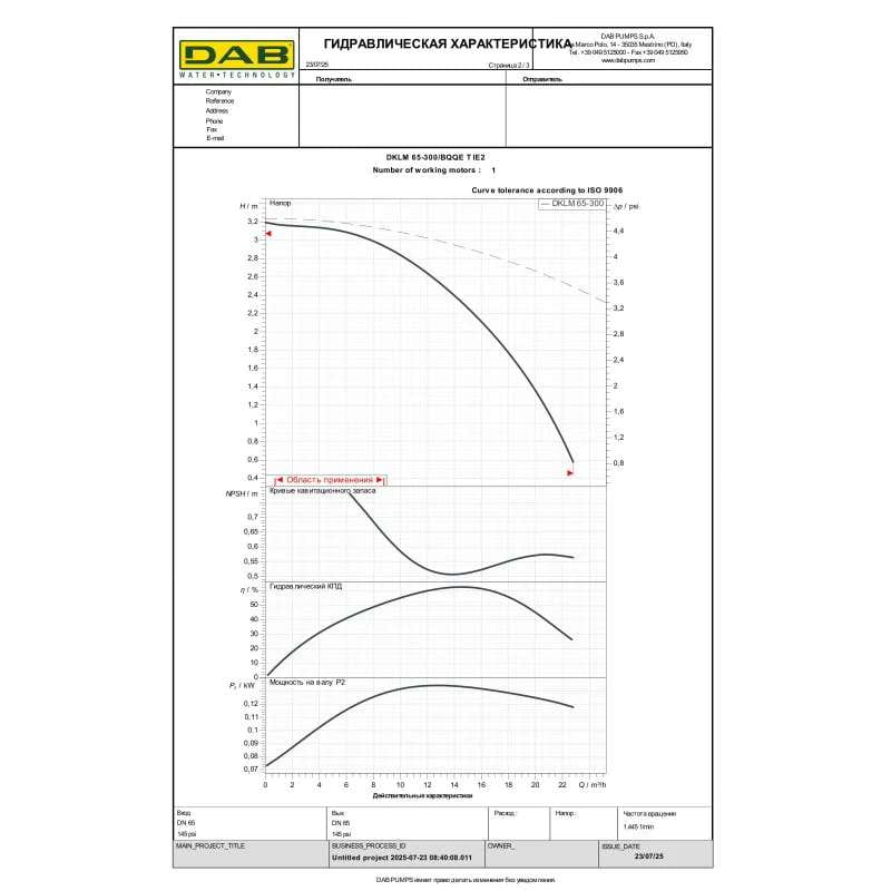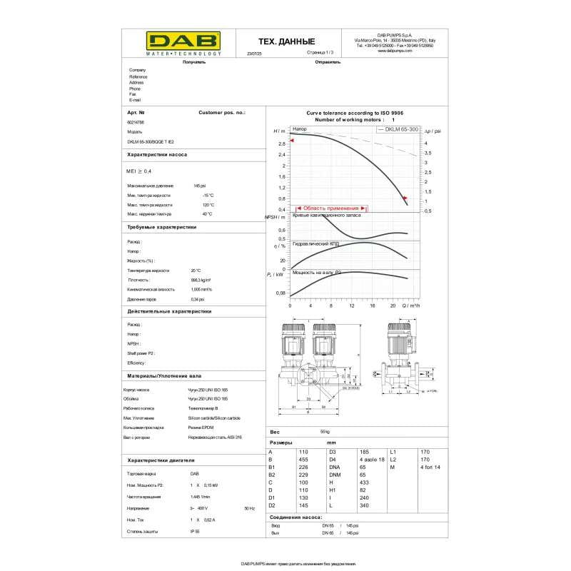 Циркуляционный насос ин-лайн DAB DKLP 65-300/BQQE T 150 Вт H 3 м Q 380 л/мин механический (60214788)