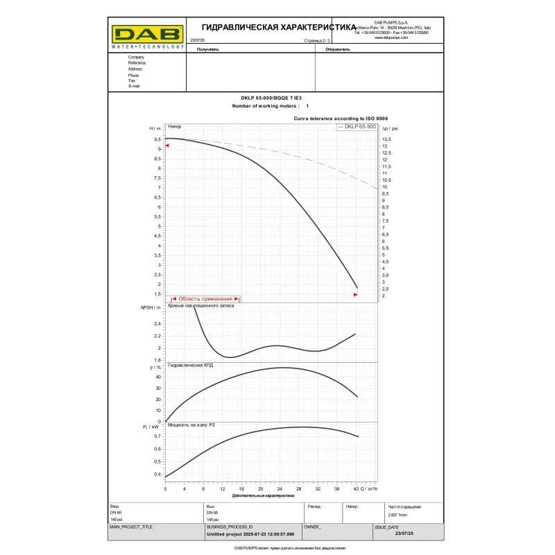 Циркуляционный насос ин-лайн DAB DKLP 65-900/BQQE T 800 Вт H 10 м Q 670 л/мин механический (60214781)