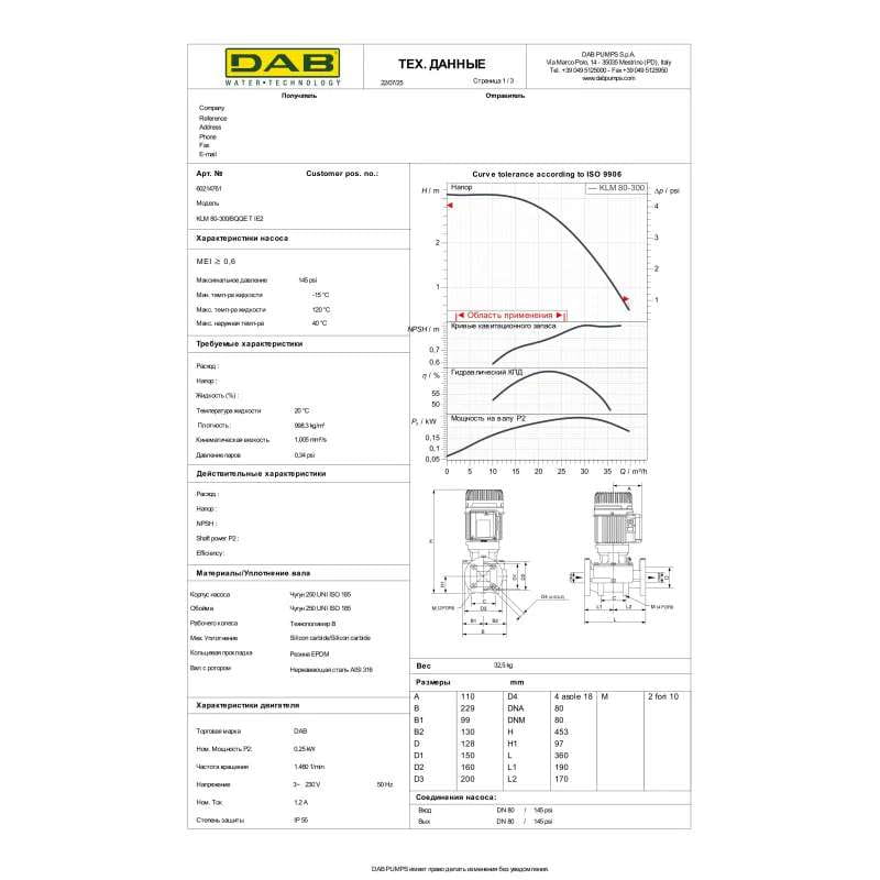 Циркуляционный насос ин-лайн DAB KLM 80-300 T 510 Вт H 10 м Q 533 л/мин механический (60214761)