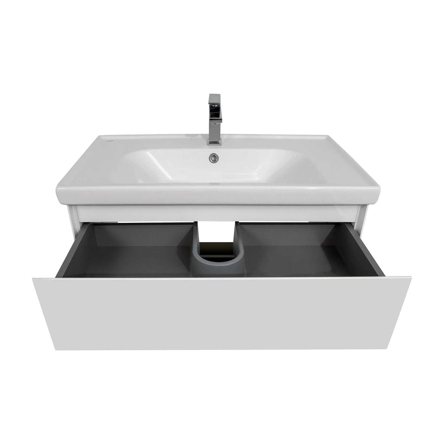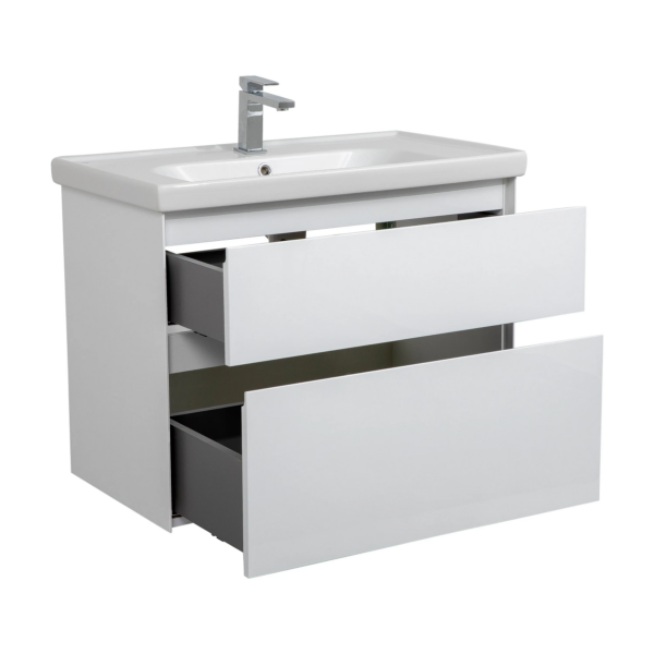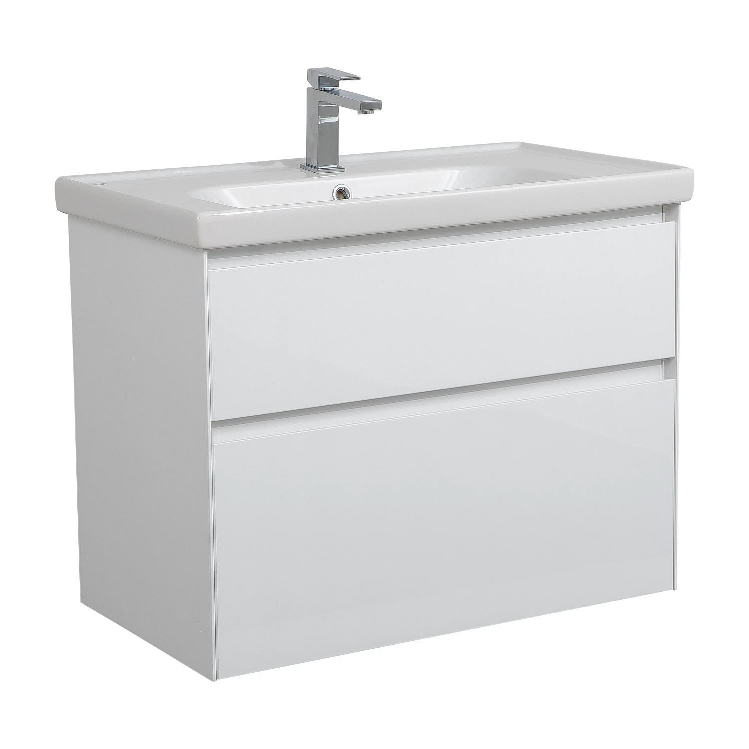 Тумба в ванную Aqua Rodos Валенсия 800х450 подвесная, с умывальником CeraStyle Frame 80, белый глянец (АР000094901)