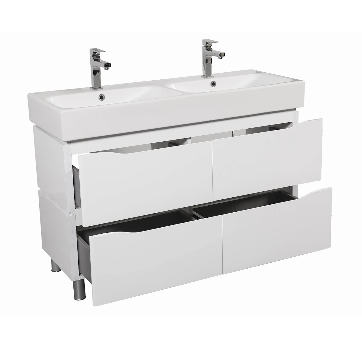 Тумба в ванную Aqua Rodos Венеция 1210х465 напольная, с умывальником CeraStyle Пинто 120, белый глянец (АР000042932)