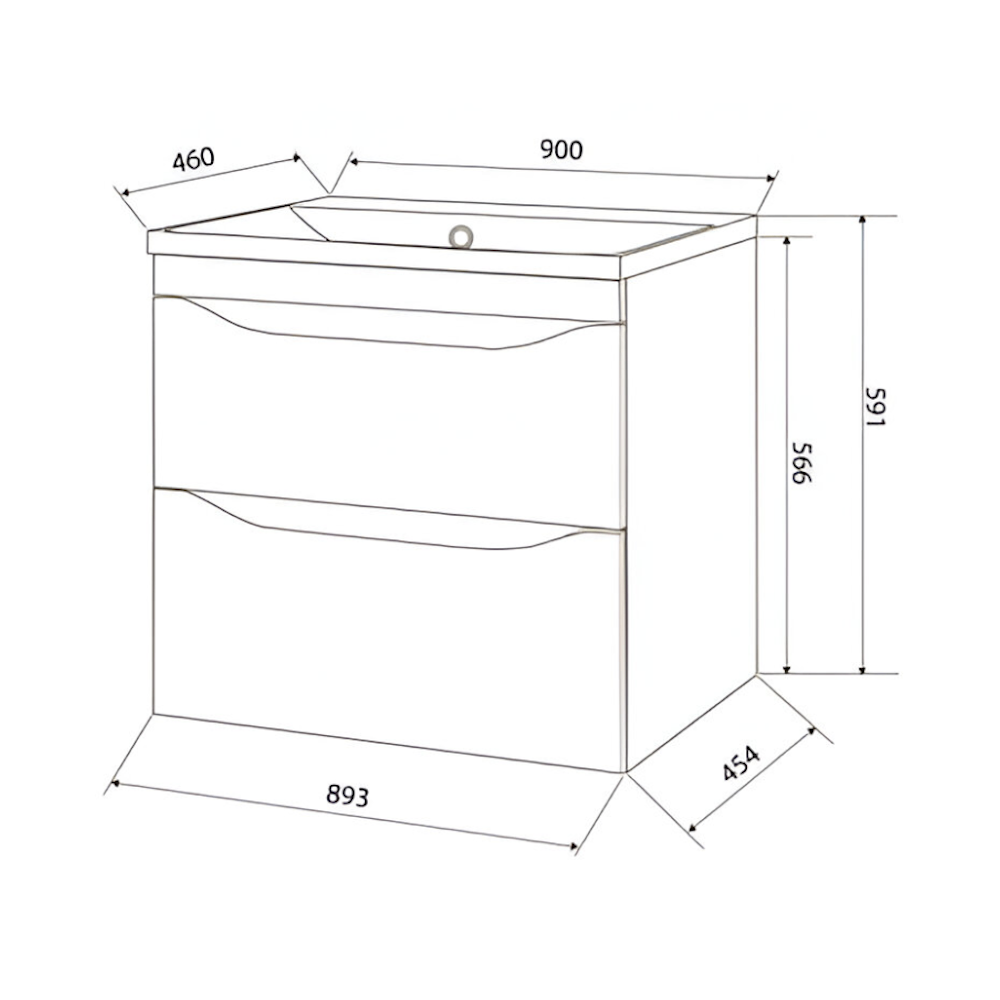 Тумба в ванную Norway Avalon New 900х460 подвесная, с умывальником Amelia, белая (M100090)