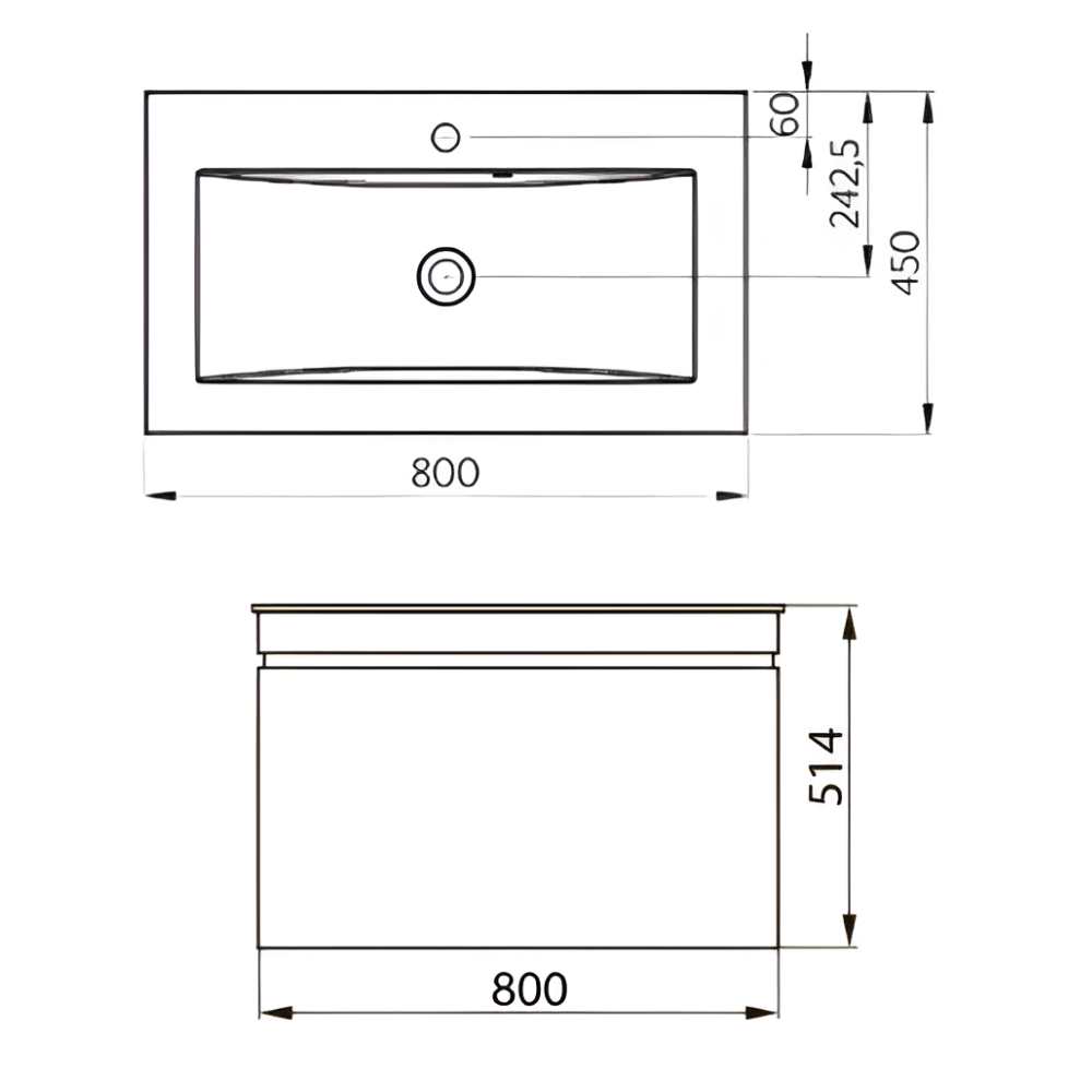 Тумба в ванную Norway Eva 800х450 подвесная, с умывальником, белая (M105080)