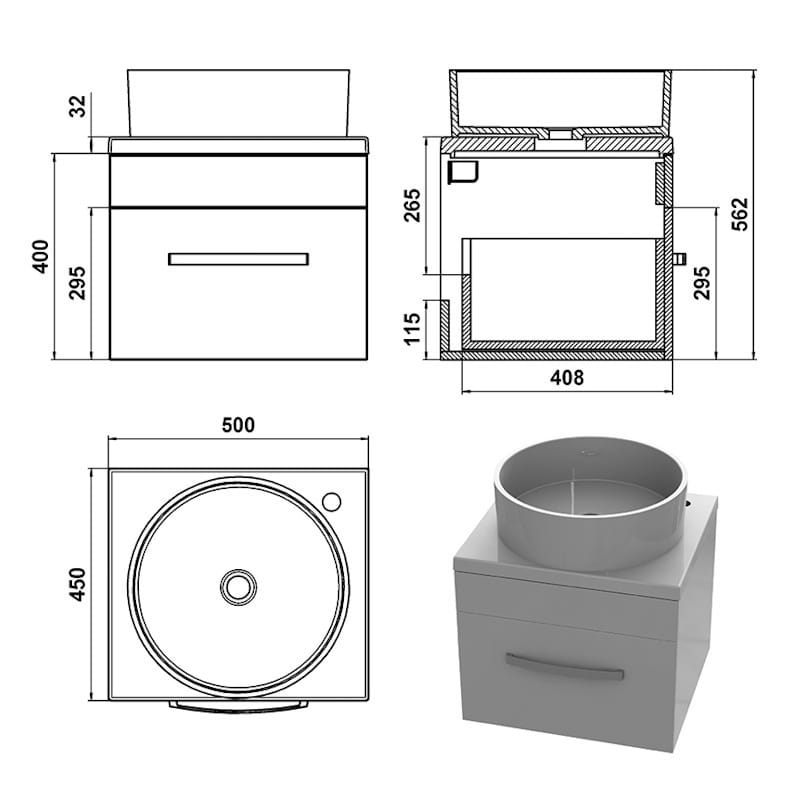 Тумба в ванную Snail Адель 500х450 подвесная, с умывальником Оазис 43, белая