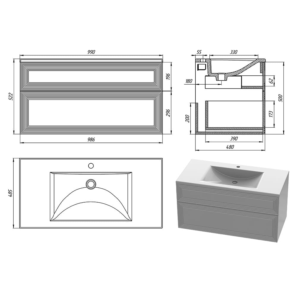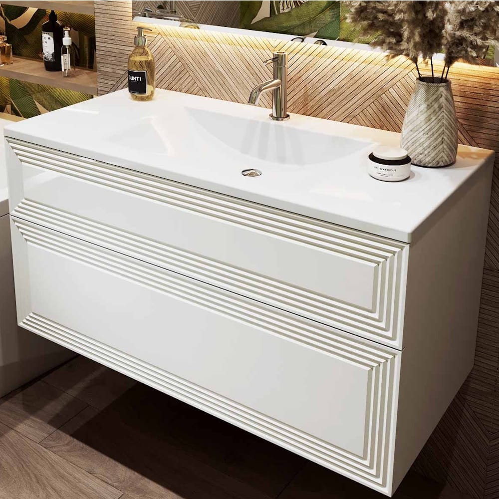 Тумба в ванную Snail Азалия 1000х485 подвесная, с матовым умывальником Орфей 100, белая
