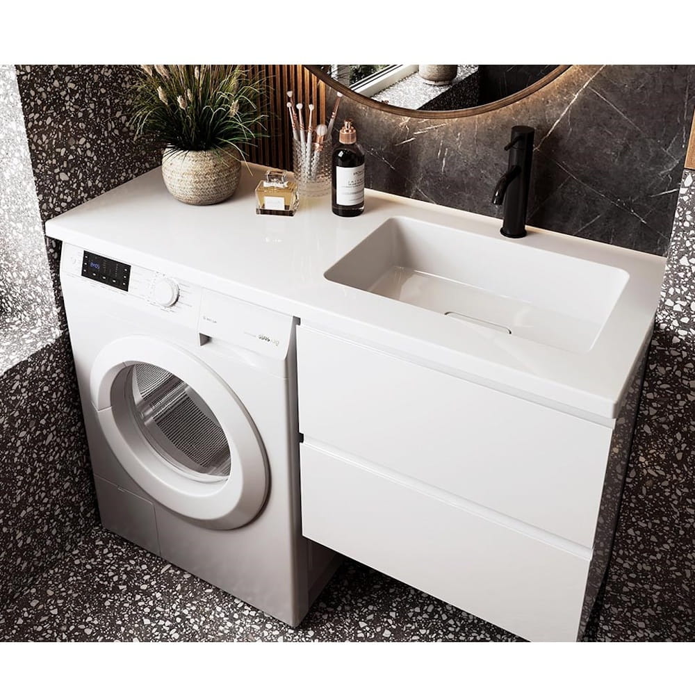 Тумба в ванную Snail Барнео 570х490 P подвесная, с умывальником Аляска 120, белая