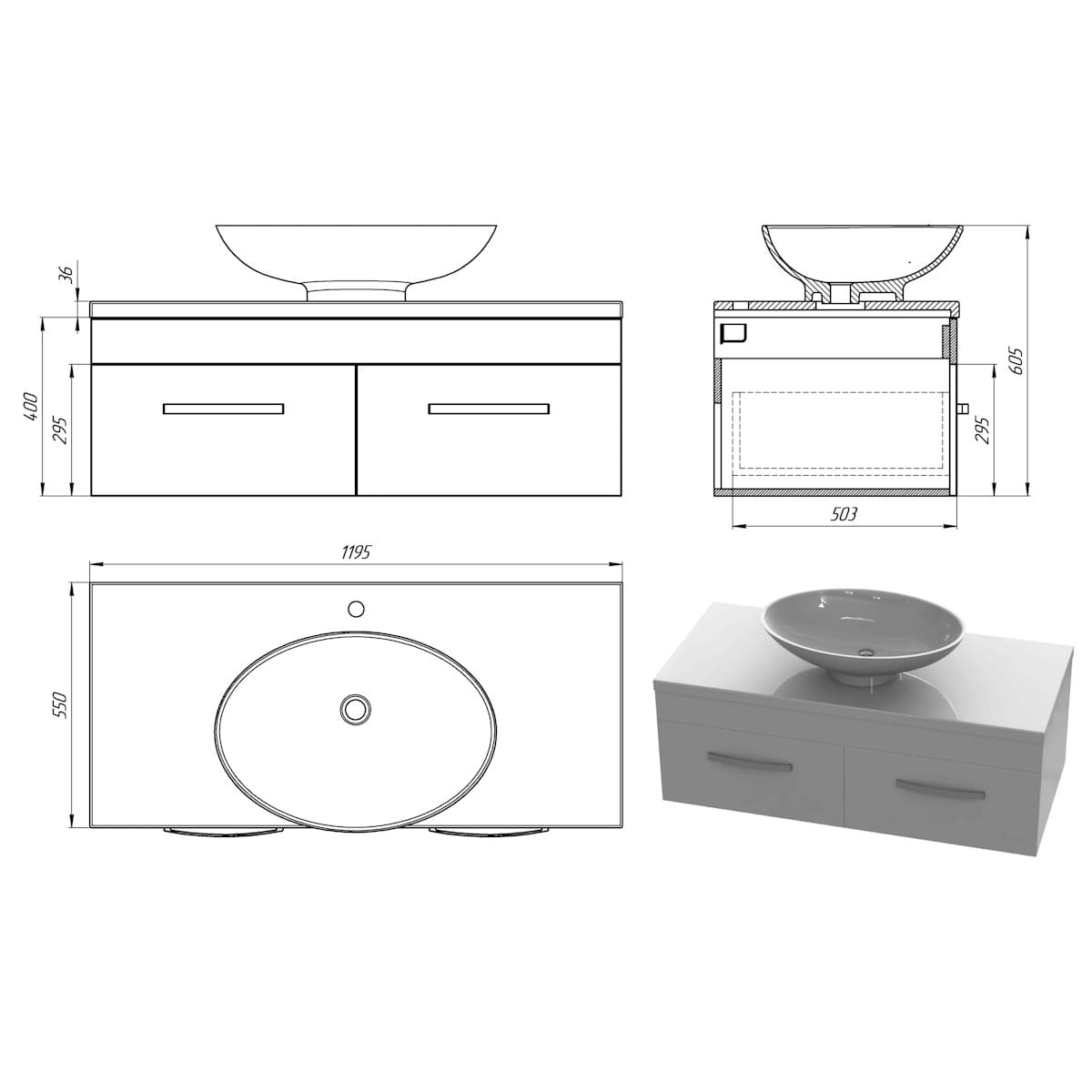 | Комплектация | Комплект креплений, Столешница, Тумба под умывальник, Умывальник |
