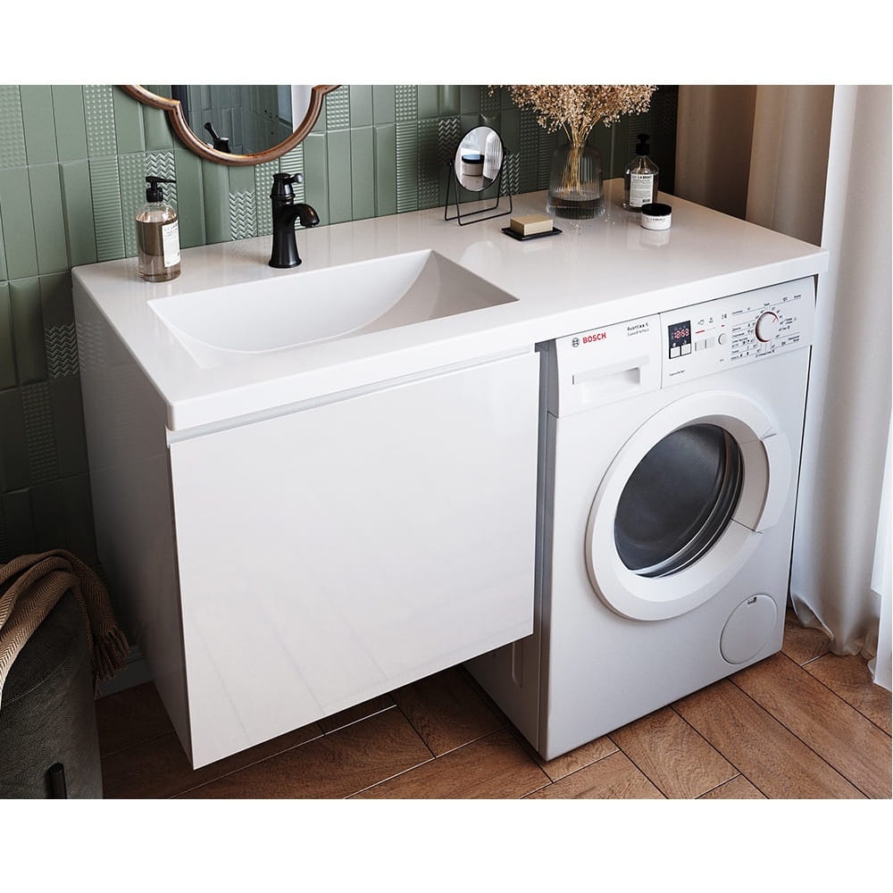 Тумба в ванную Snail Вирджиния 600х610 L подвесная, с матовым умывальником Юнона 125, белая