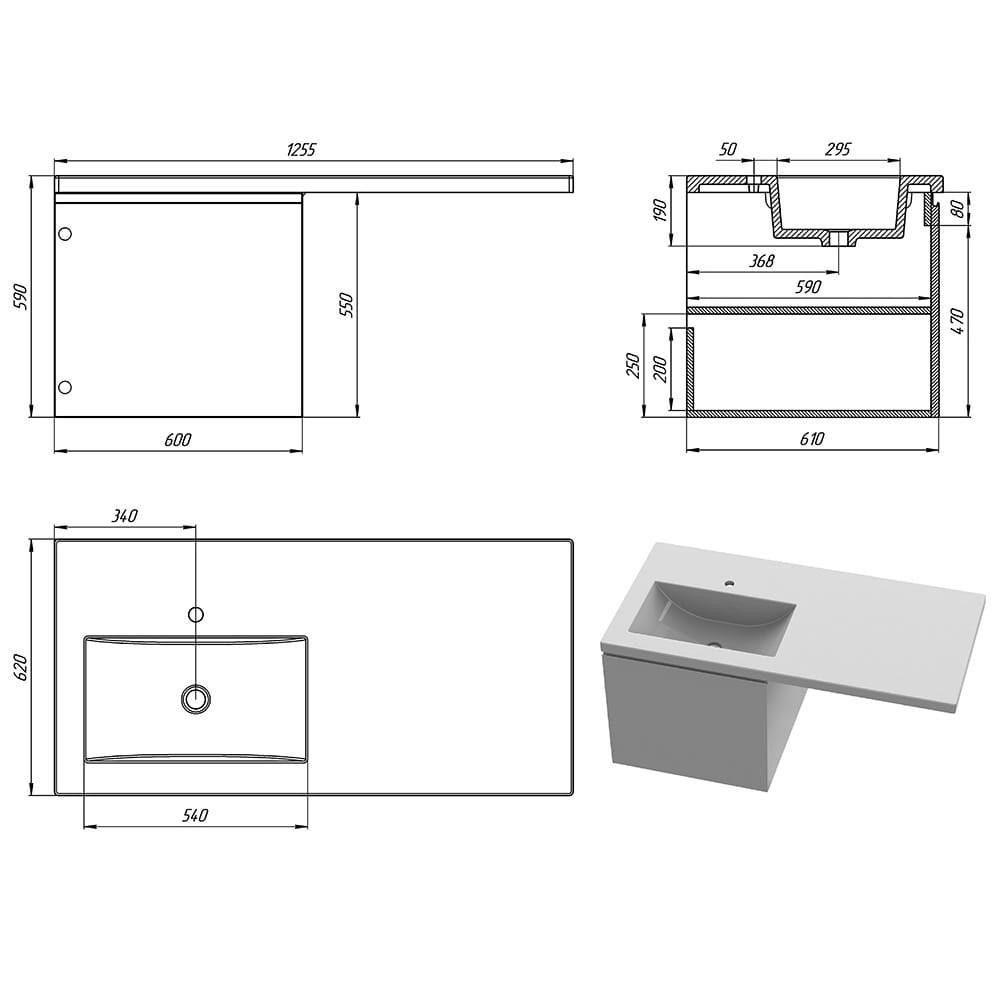 | Комплектация | Комплект креплений, Тумба под умывальник, Умывальник |
