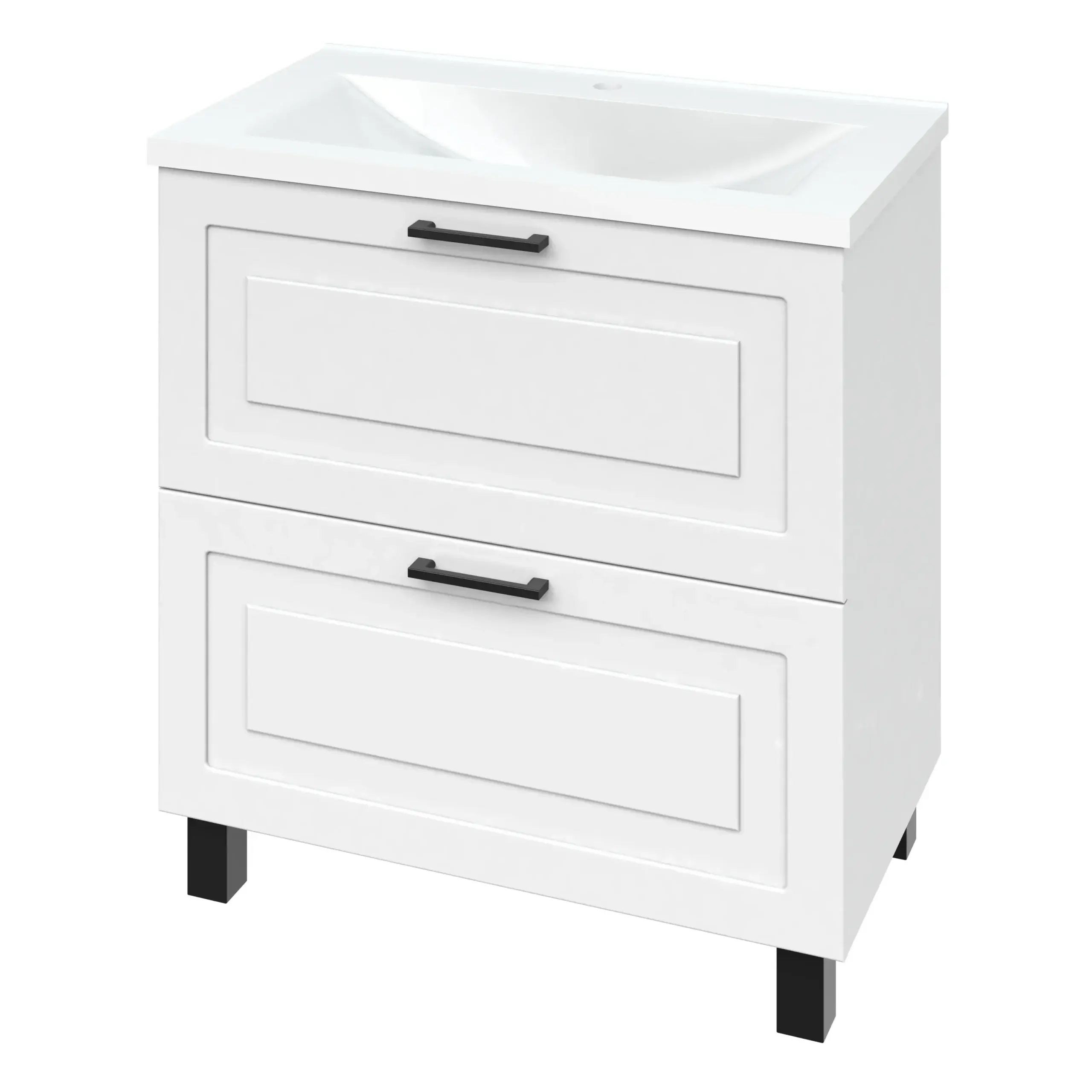 Тумба в ванную Van Mebles Альба 800×450 напольная, с умывальником Глория 80, белая матовая