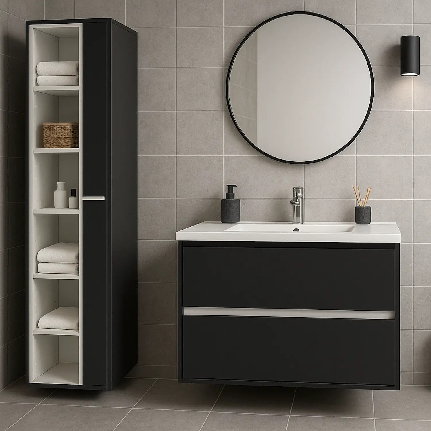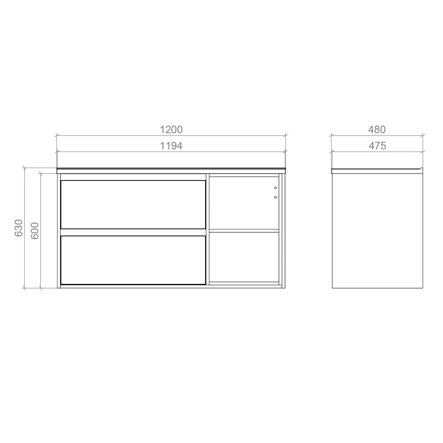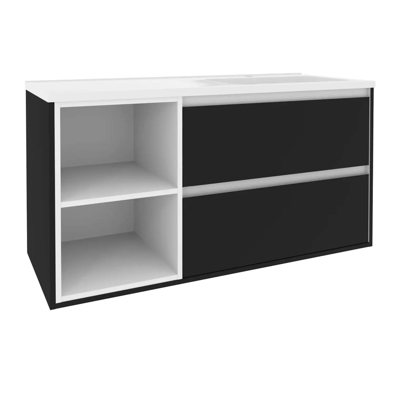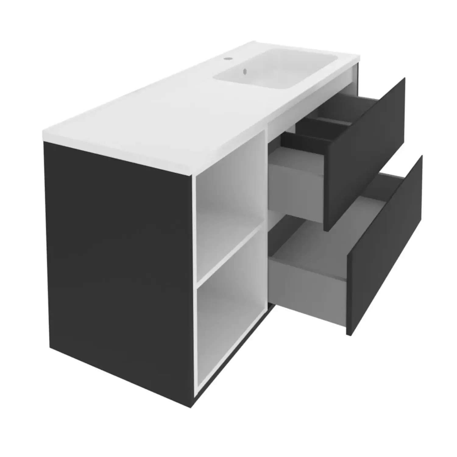 Тумба в ванную Van Mebles Айрис 1200×480 R подвесная, с умывальником Родео 120, черная