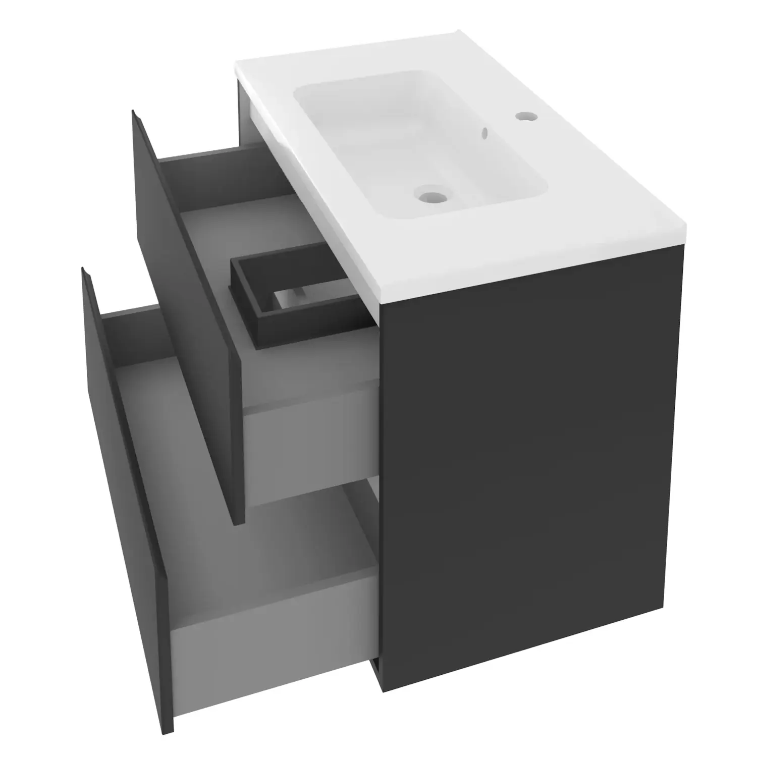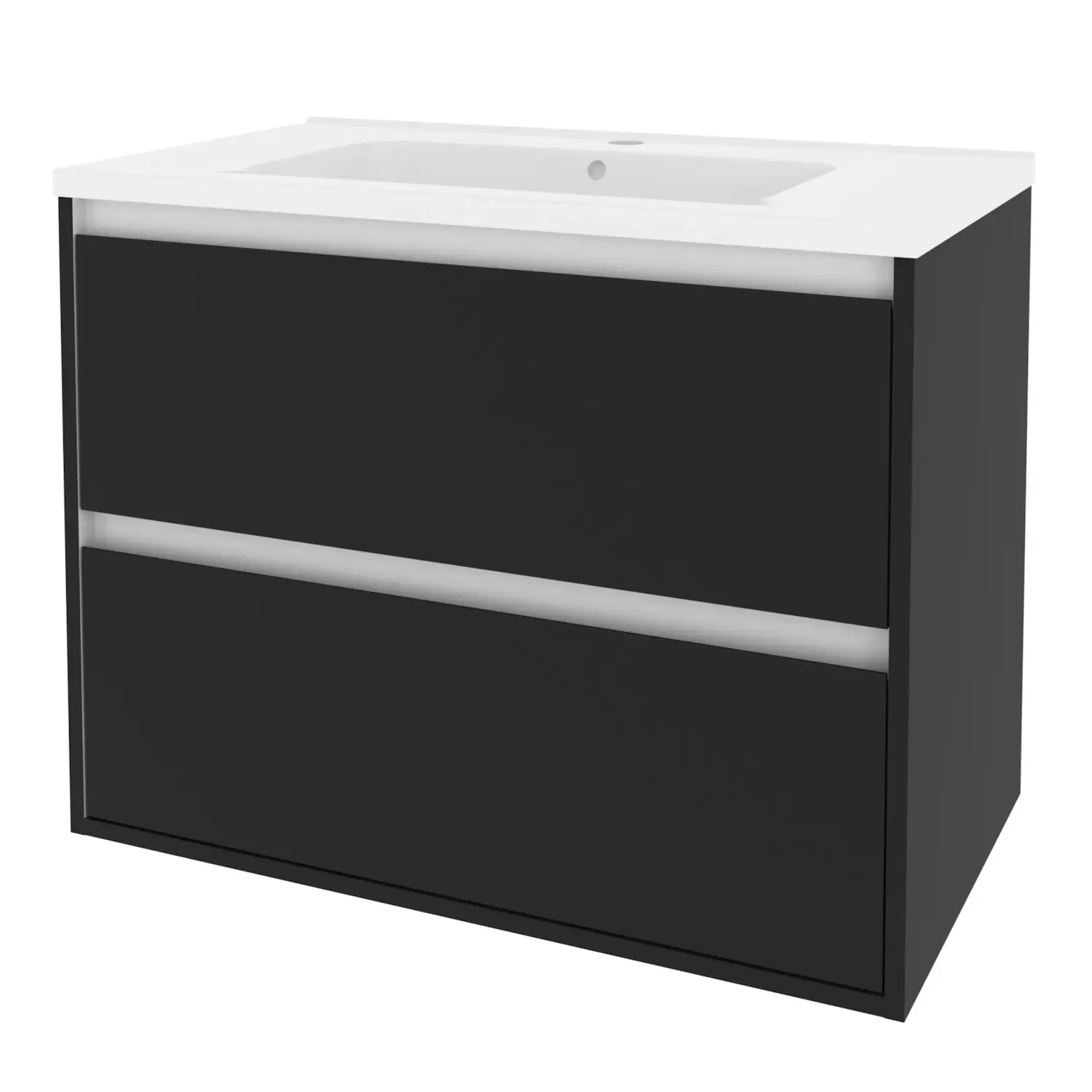 Тумба в ванную Van Mebles Айрис 800х450 подвесная, с умывальником Родео 80, черная