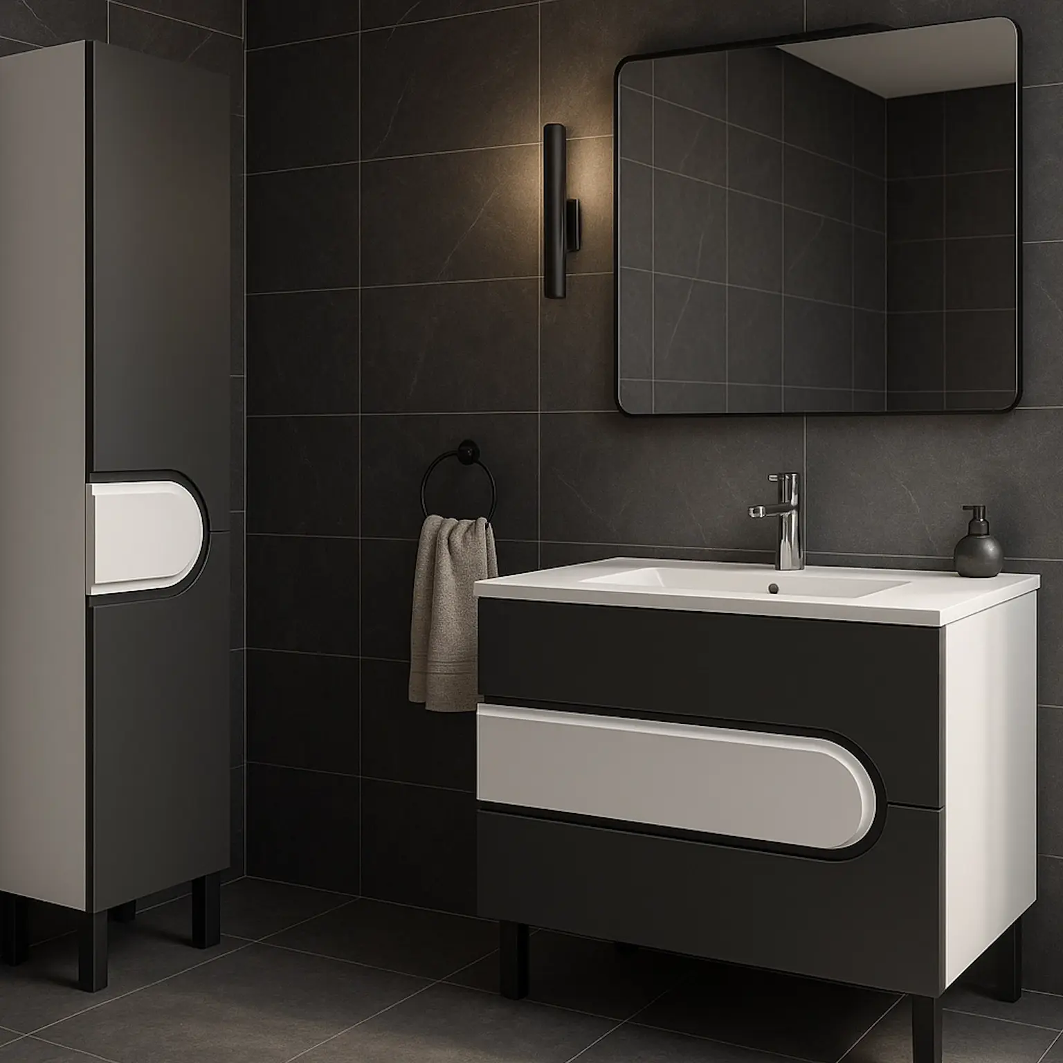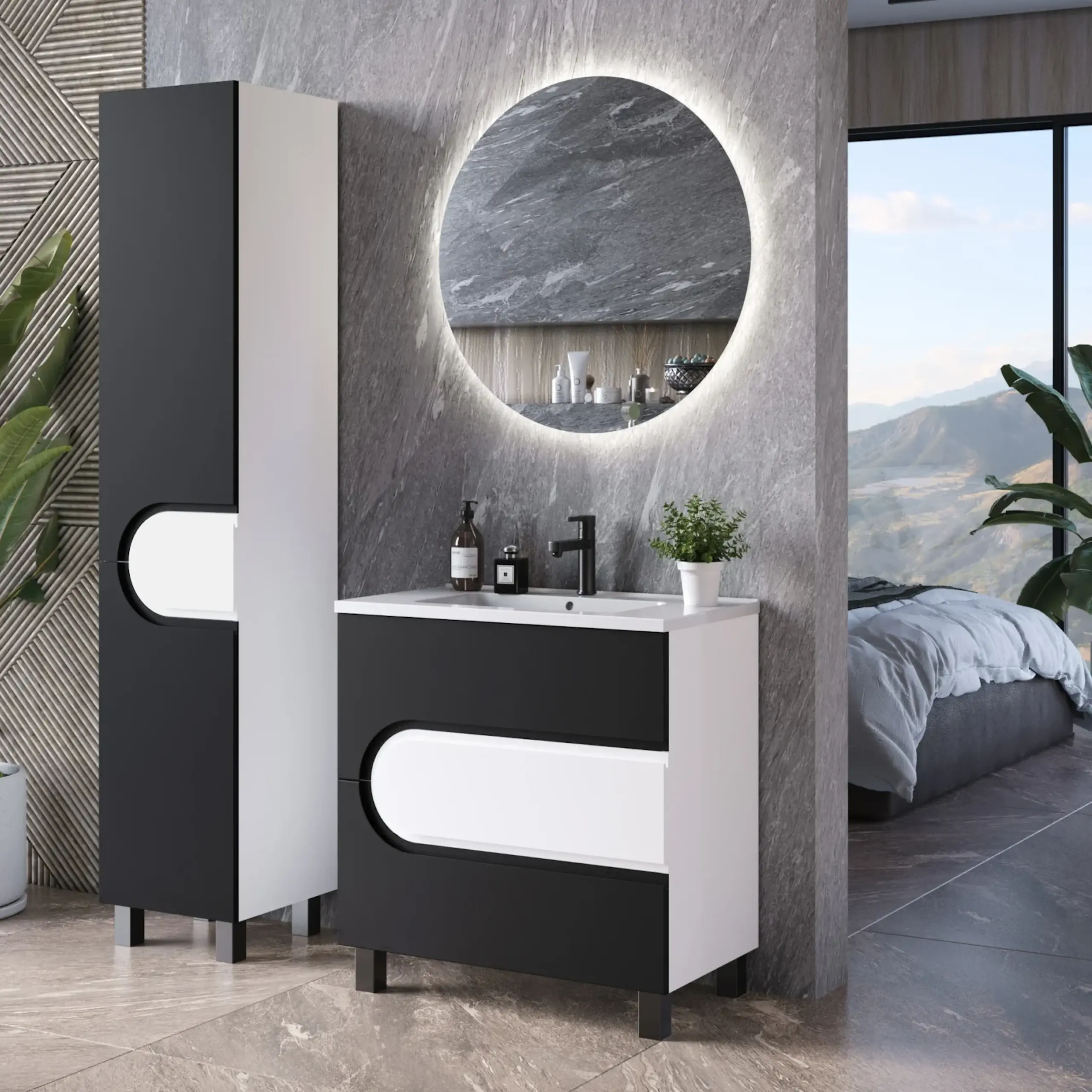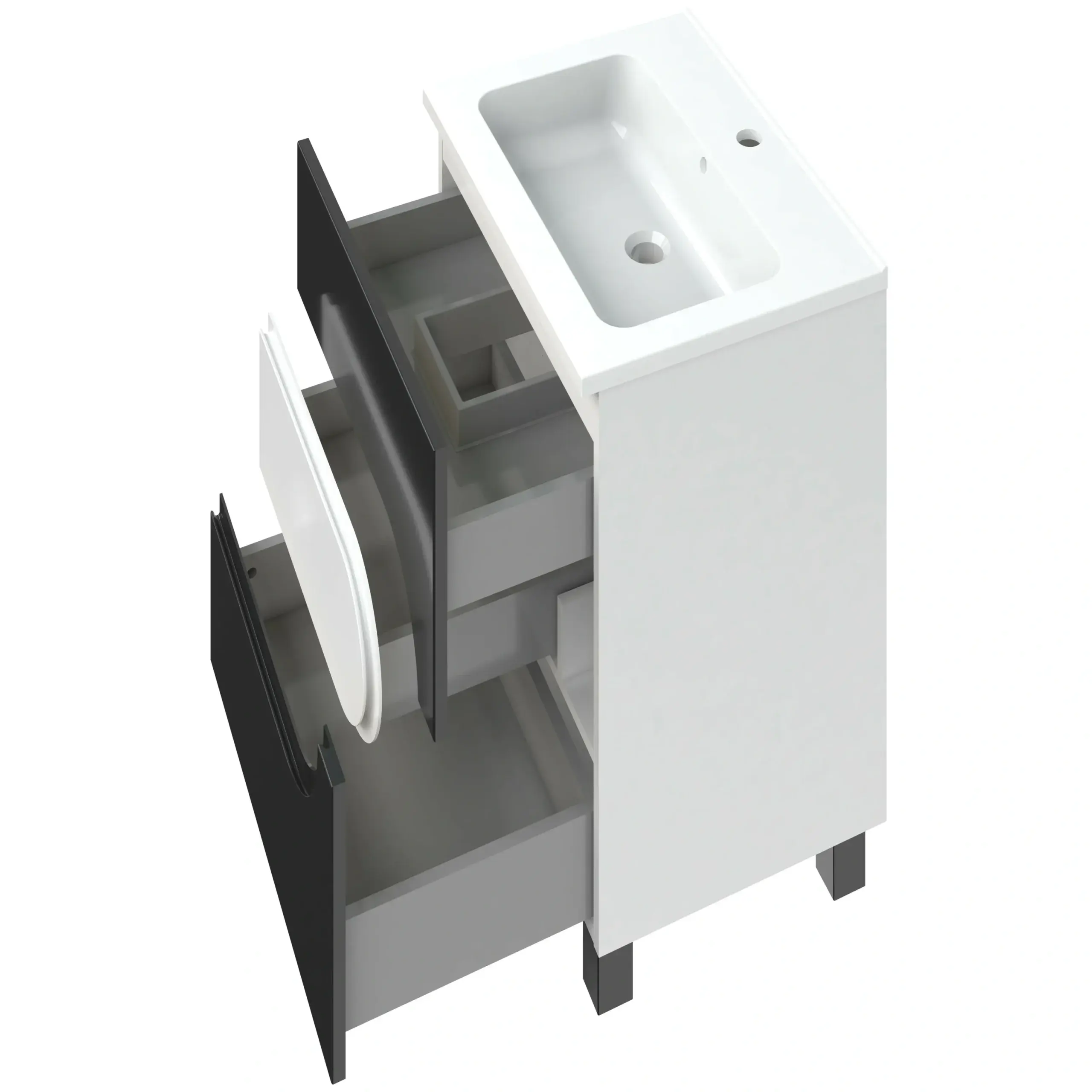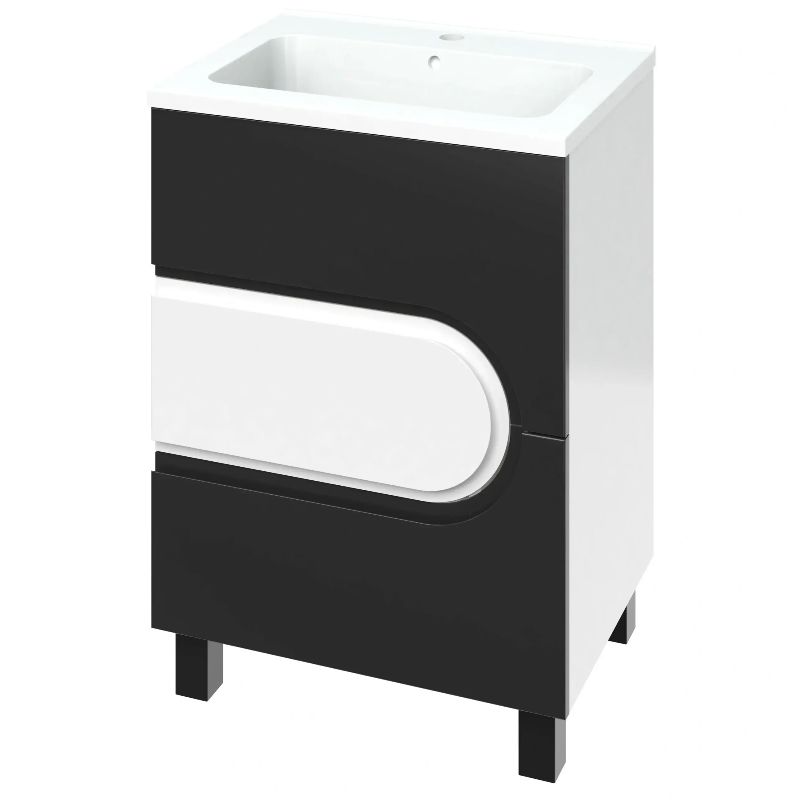 Тумба в ванную Van Mebles Домино 600×450 R напольная, с умывальником Родео 60, белый/черный