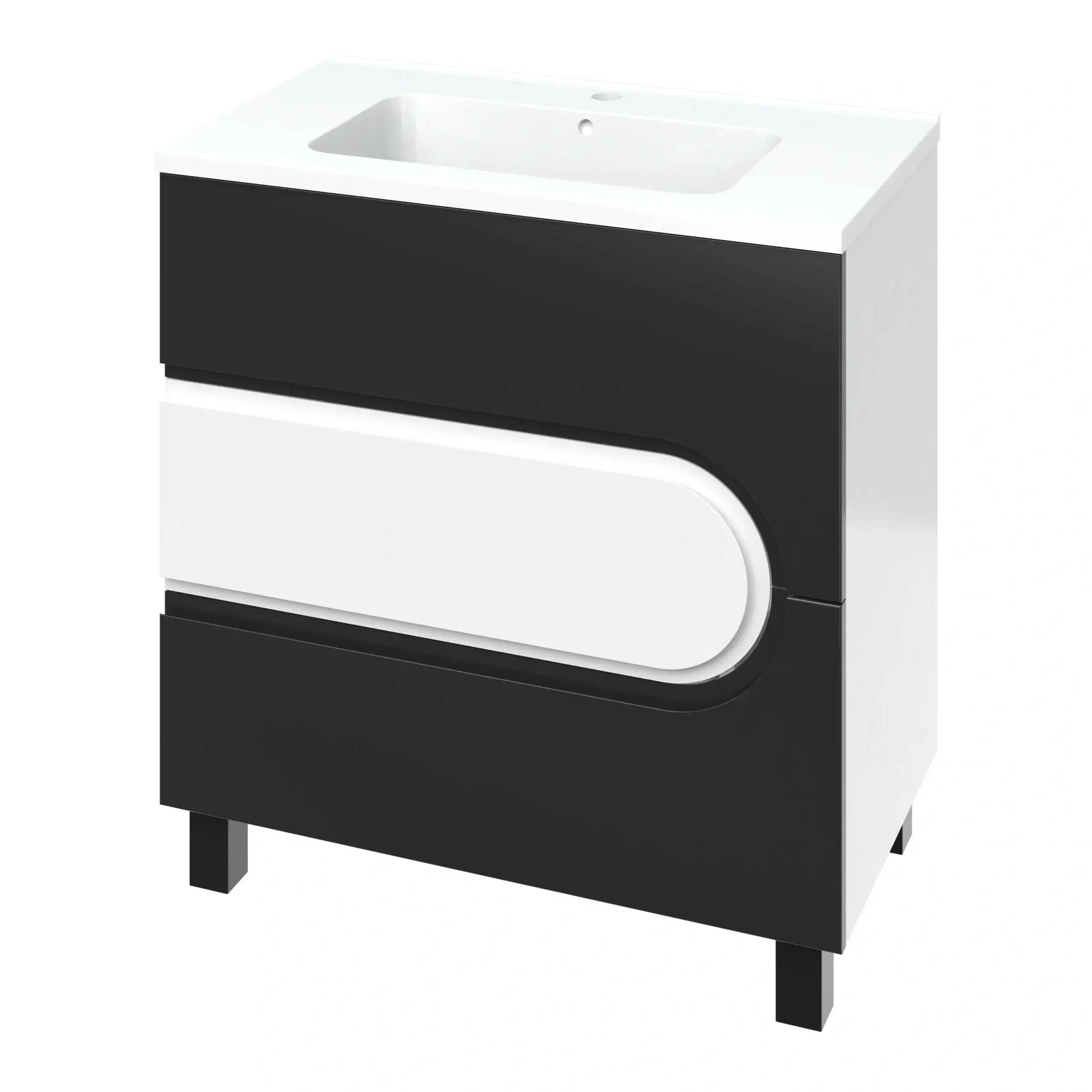 Тумба в ванную Van Mebles Домино NEW 800х450 L напольная, с умывальником Родео 80, черный/белый