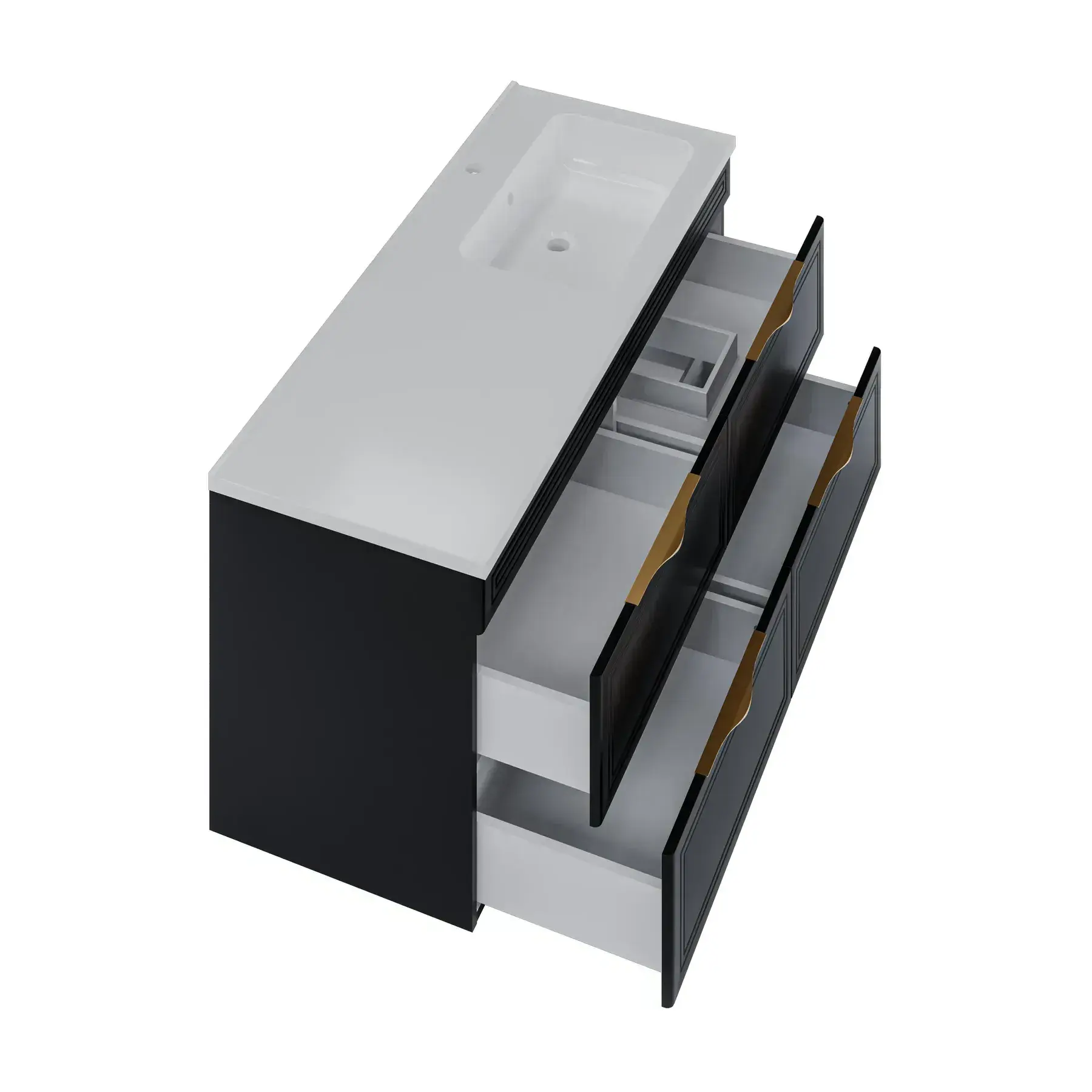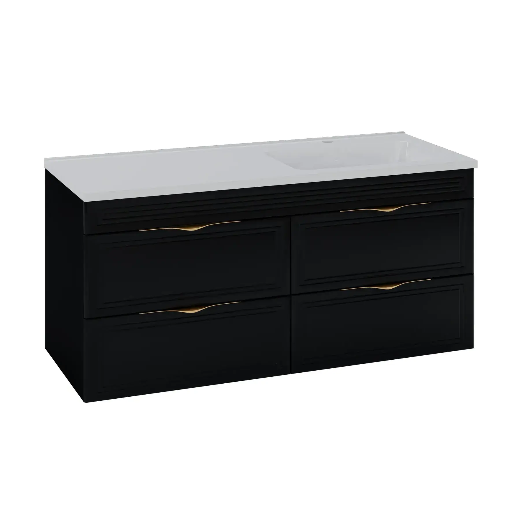 Тумба в ванную Van Mebles Эстель 1200х480 R подвесная, с умывальником Родео 120, черный