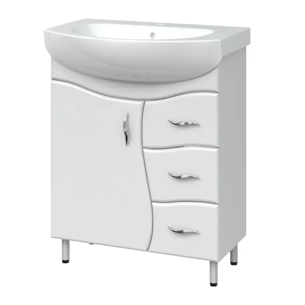 Тумба в ванную Van Mebles Волна 700×480 напольная, с умывальником Лотос 70, белый