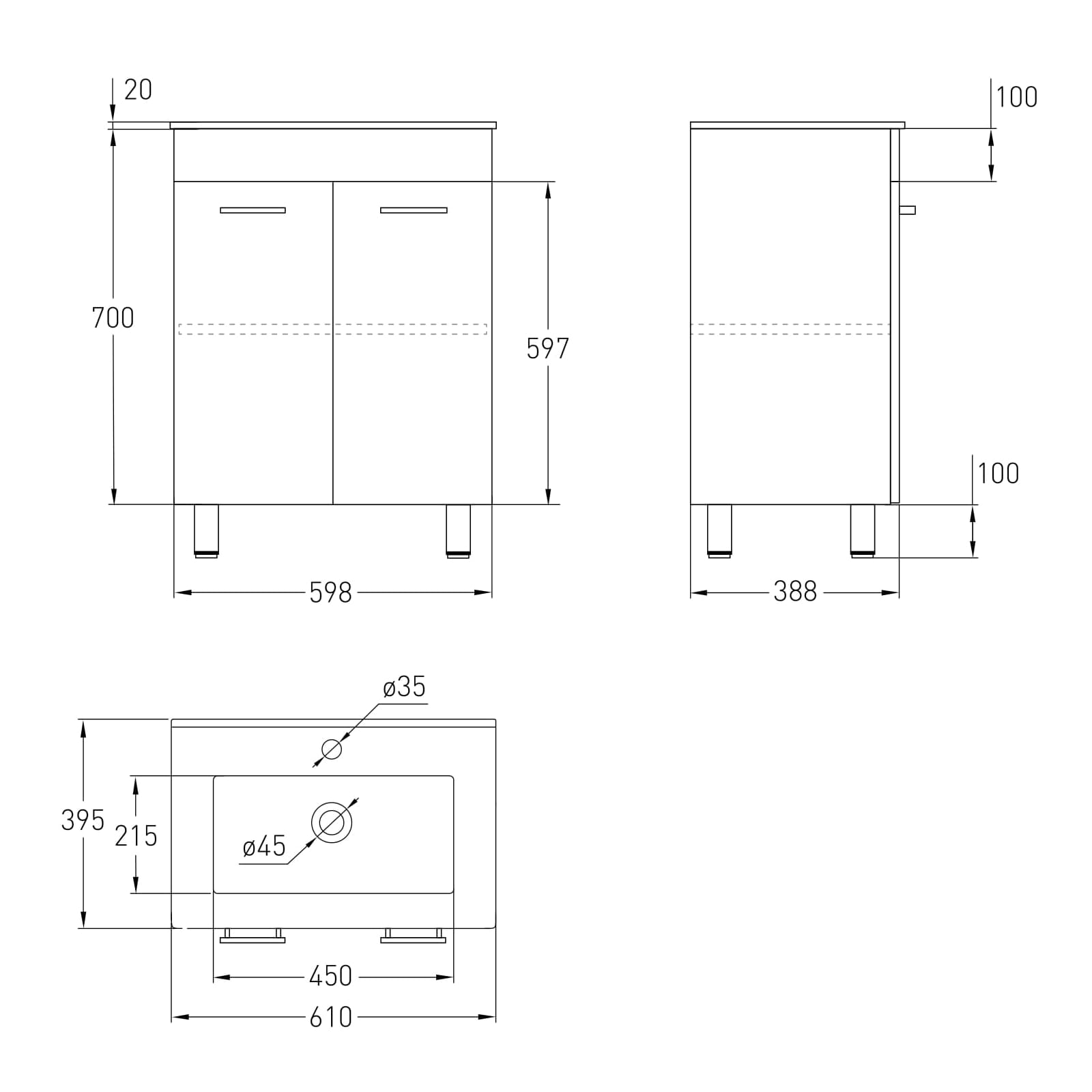 | Комплектация | Ножки, Тумба под умывальник, Умывальник |