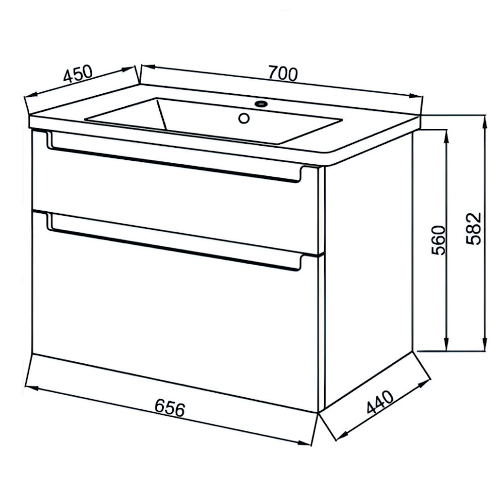Тумба в ванную Юввис Эльба ТПБ-2 Д 700х450 подвесная, с умывальником Vesta, белая