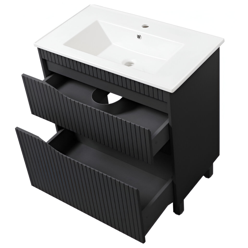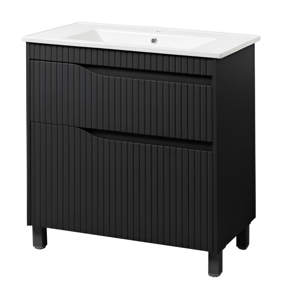 Тумба в ванную Юввис Florence ТНБ-2 Д 600х400 напольная, с умывальником Vesta, антрацит матовая