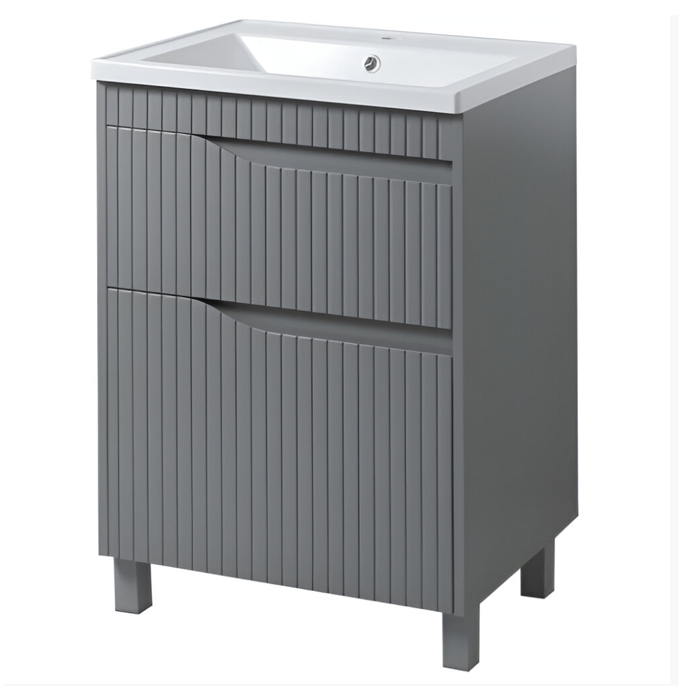 Тумба в ванную Юввис Florence ТНБ-2 Д 600х450 напольная, с умывальником Kredo, серая матовая