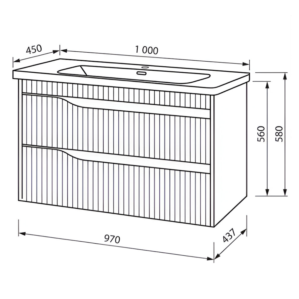Тумба в ванную Юввис Florence ТП-2 Д 1000х450 подвесная, с умывальником Квадро, белая матовая