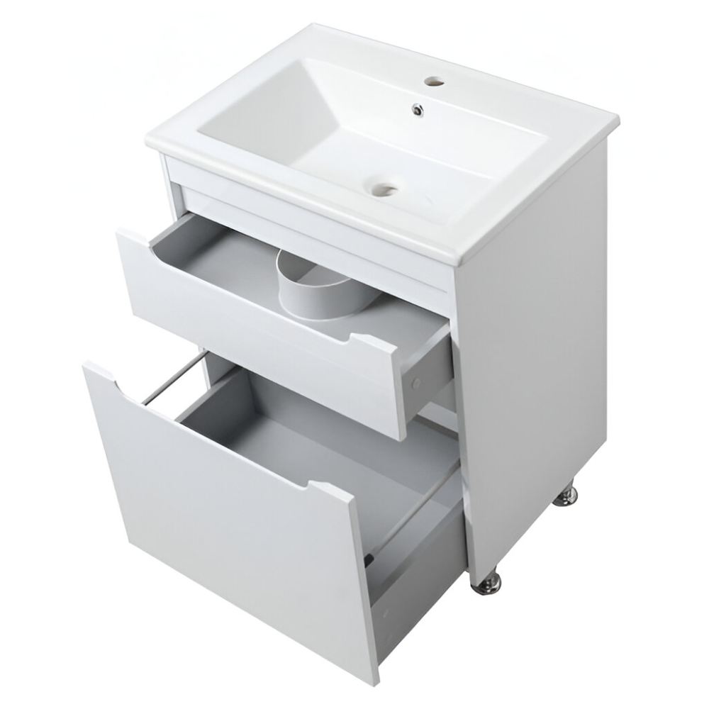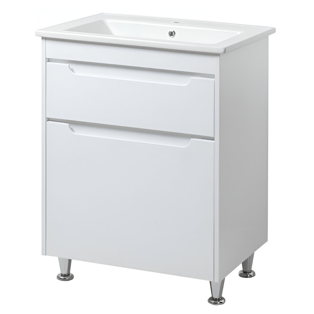 Тумба в ванную Юввис Валенсия ТНБ-2 Д 600х450 напольная, с умывальником Vesta, белая