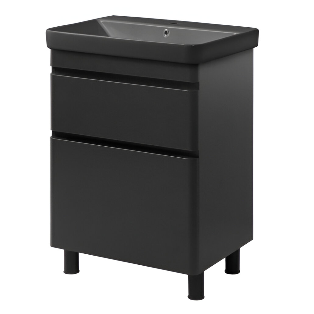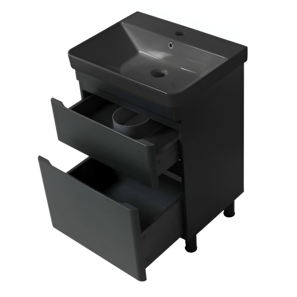 Тумба в ванную Юввис Vivace ТНБ-2 Д 700х460 напольная, с умывальником Vivace, антрацит матовый