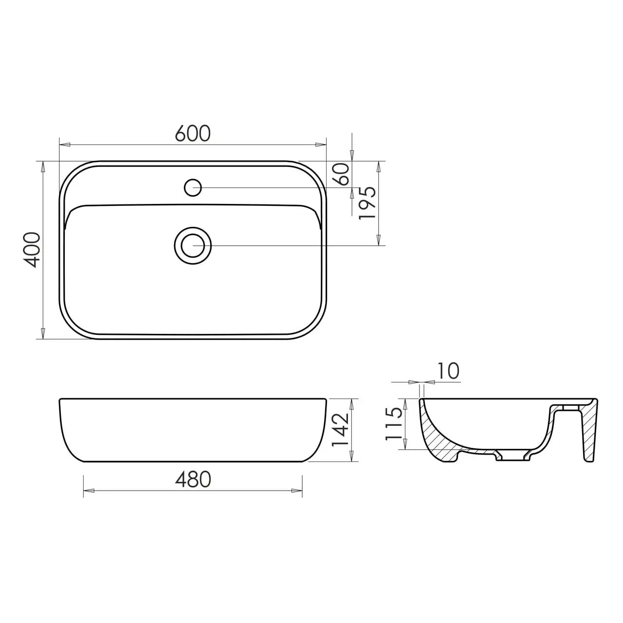 Умывальник накладной DiMARCO Flavio 600×400 прямоугольный, белый (DM2F008WH)
