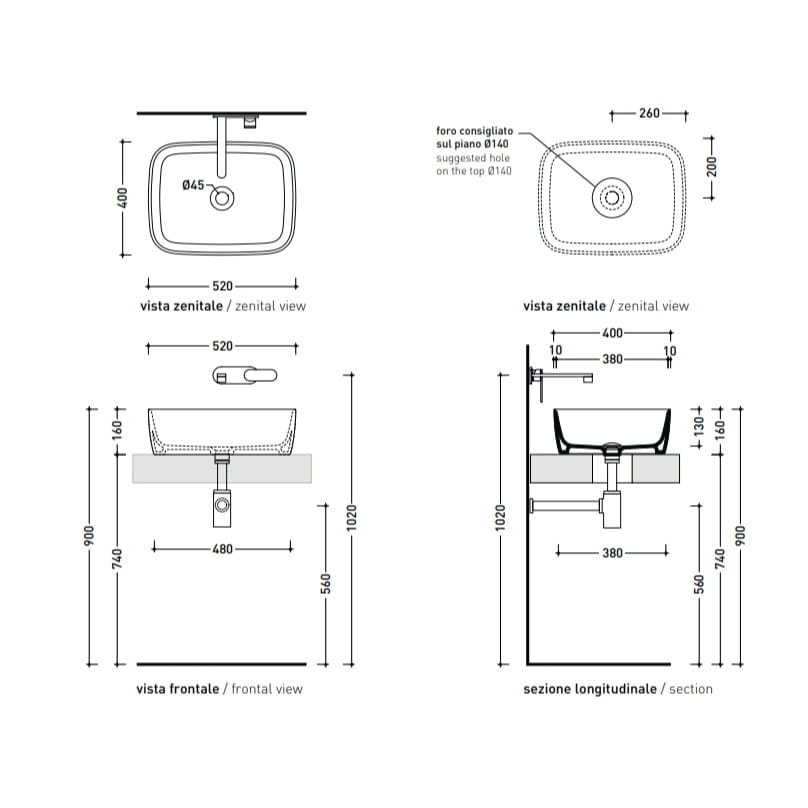 Умывальник накладной Flaminia Play 520×400 прямоугольный, белый глянцевый (PY52A)