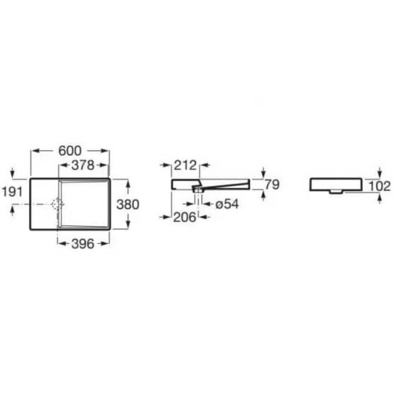 Умывальник накладной Roca Horizon-Dash 600×380 прямоугольный, белый глянцевый (A32727900B)
