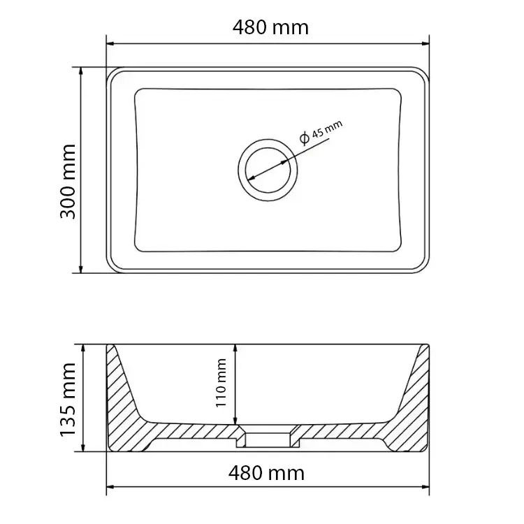 | Форма раковины | Прямоугольная |