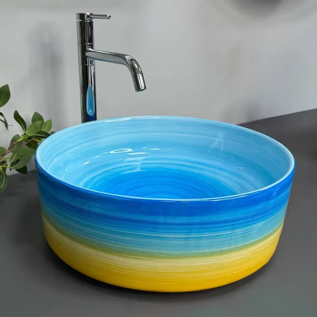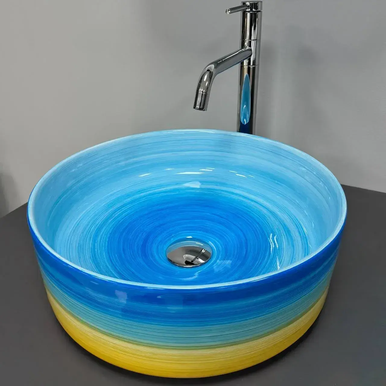 Умывальник накладной VBI Liberta 375×375 круглый, желто-синий (VBI-016107)