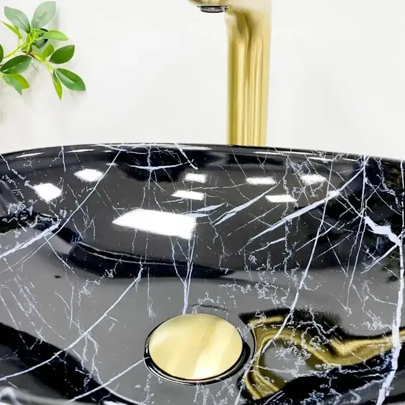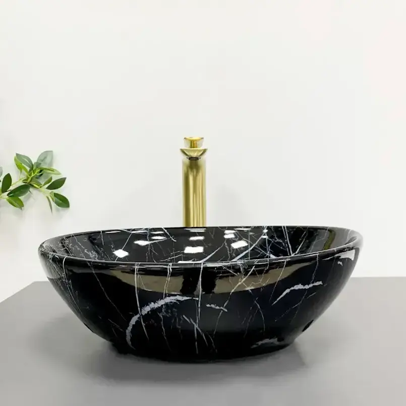 Умывальник накладной VBI Parma Black Stone Glossy 415×310 овальный, с узором (VBI-011014)