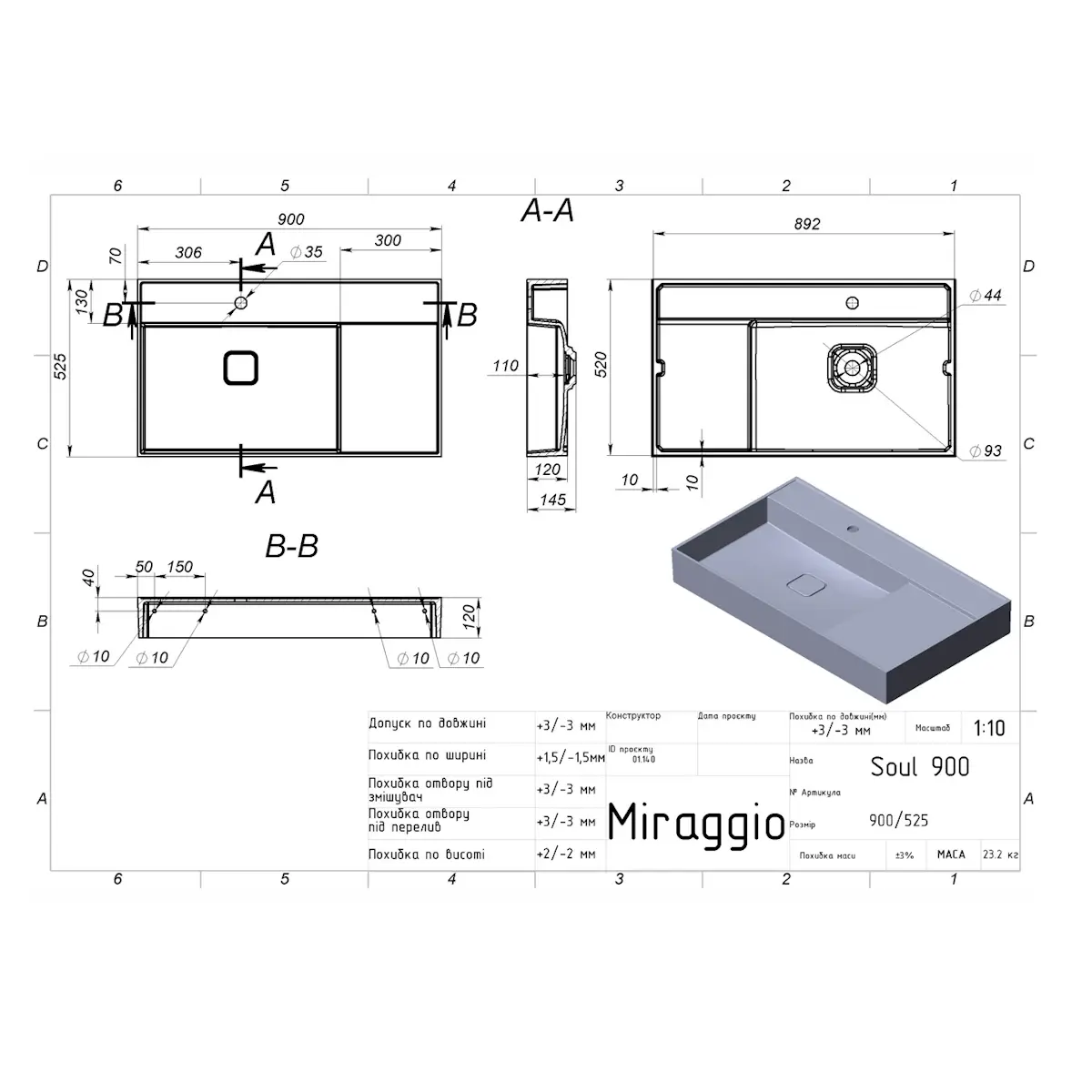 | Наличие перелива | Нет |