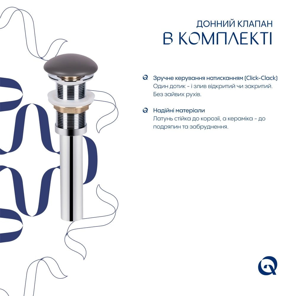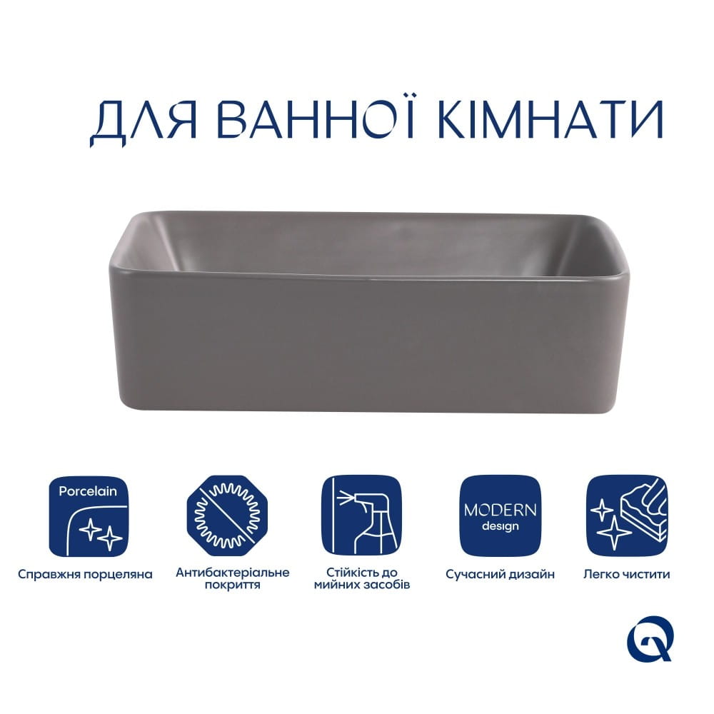 Умывальник накладной Qtap Tern 480х370 прямоугольная, серый матовый + донный клапан (QT17116069SG)