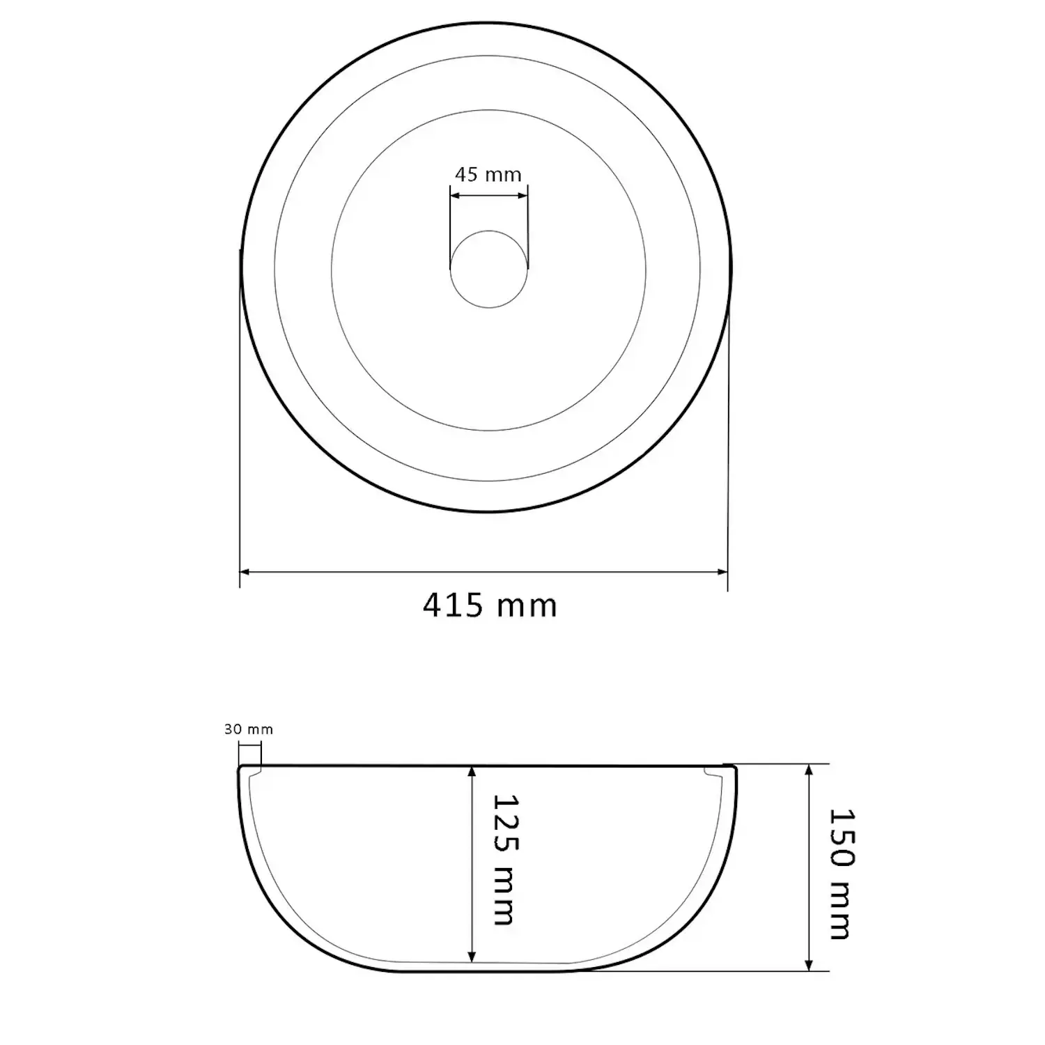 | Глубина чаши, мм | 125 |