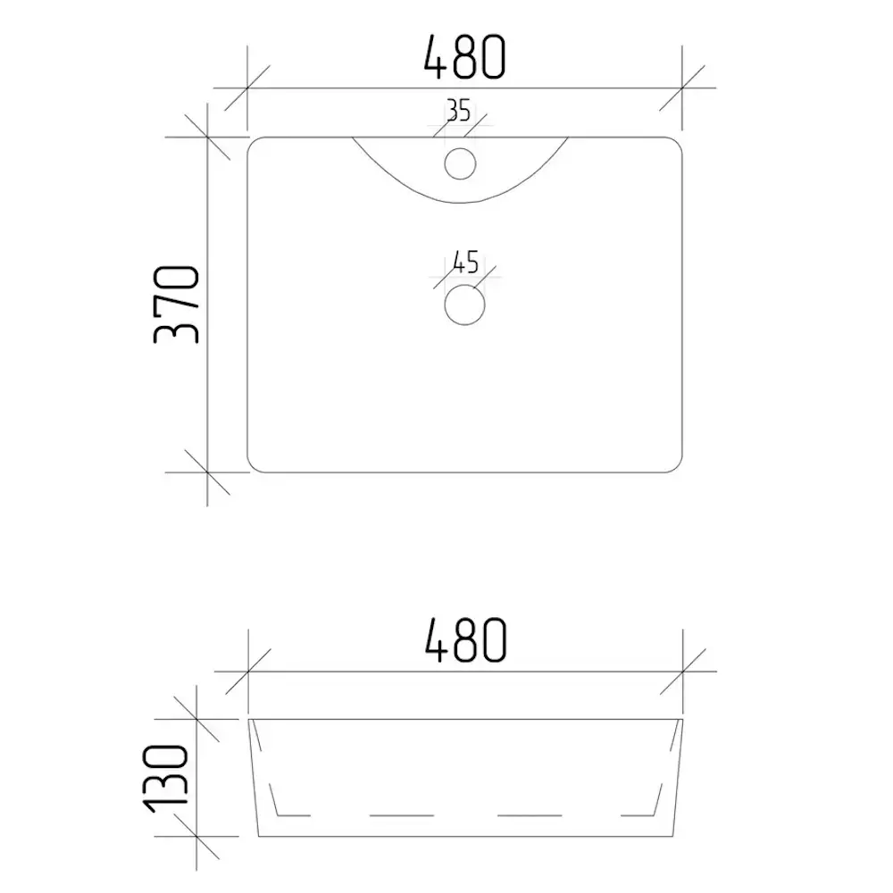 Умывальник накладной VBI Forli 480×370 прямоугольный, белый (VBI-011108)