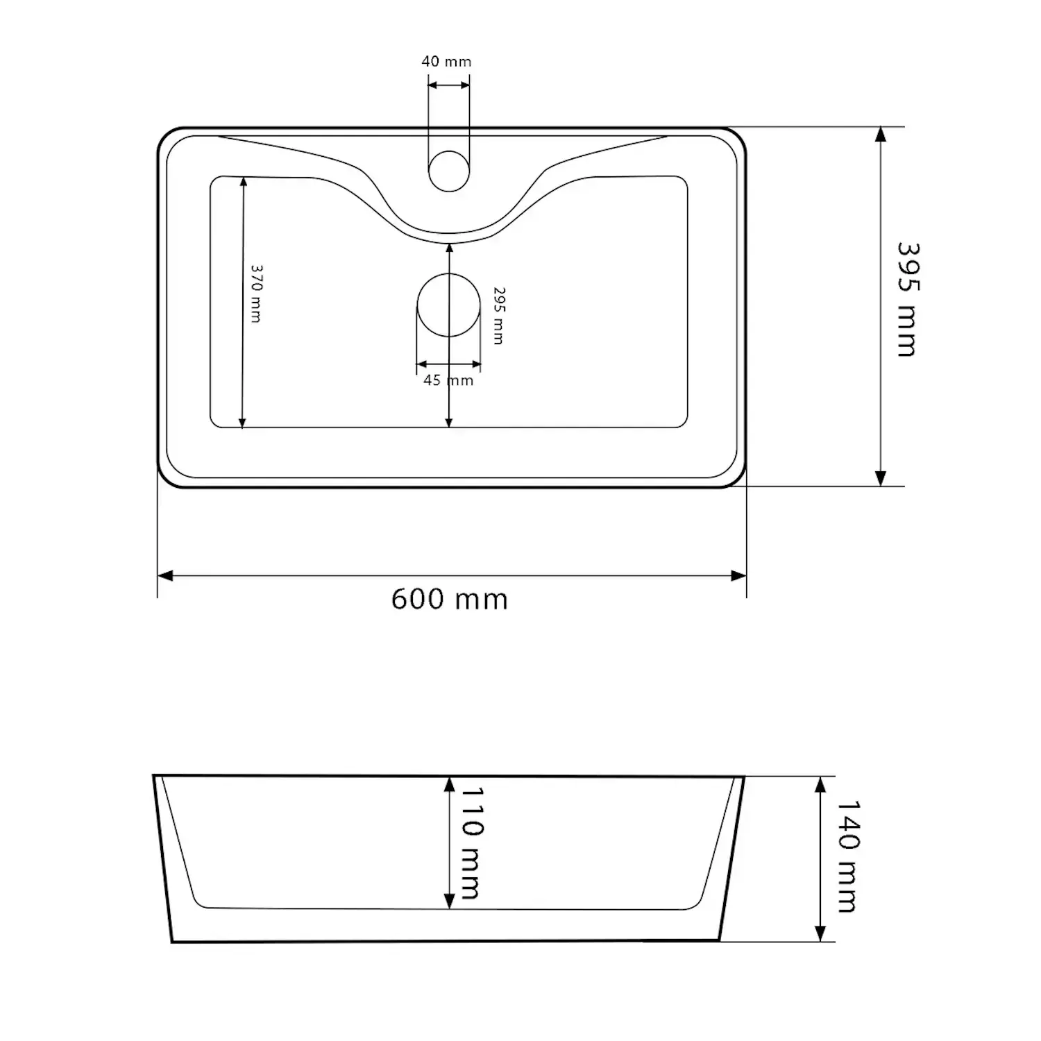 | Форма раковины | Прямоугольная |