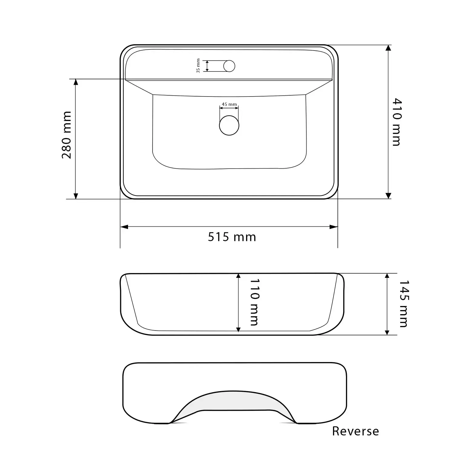 | Форма раковины | Прямоугольная |