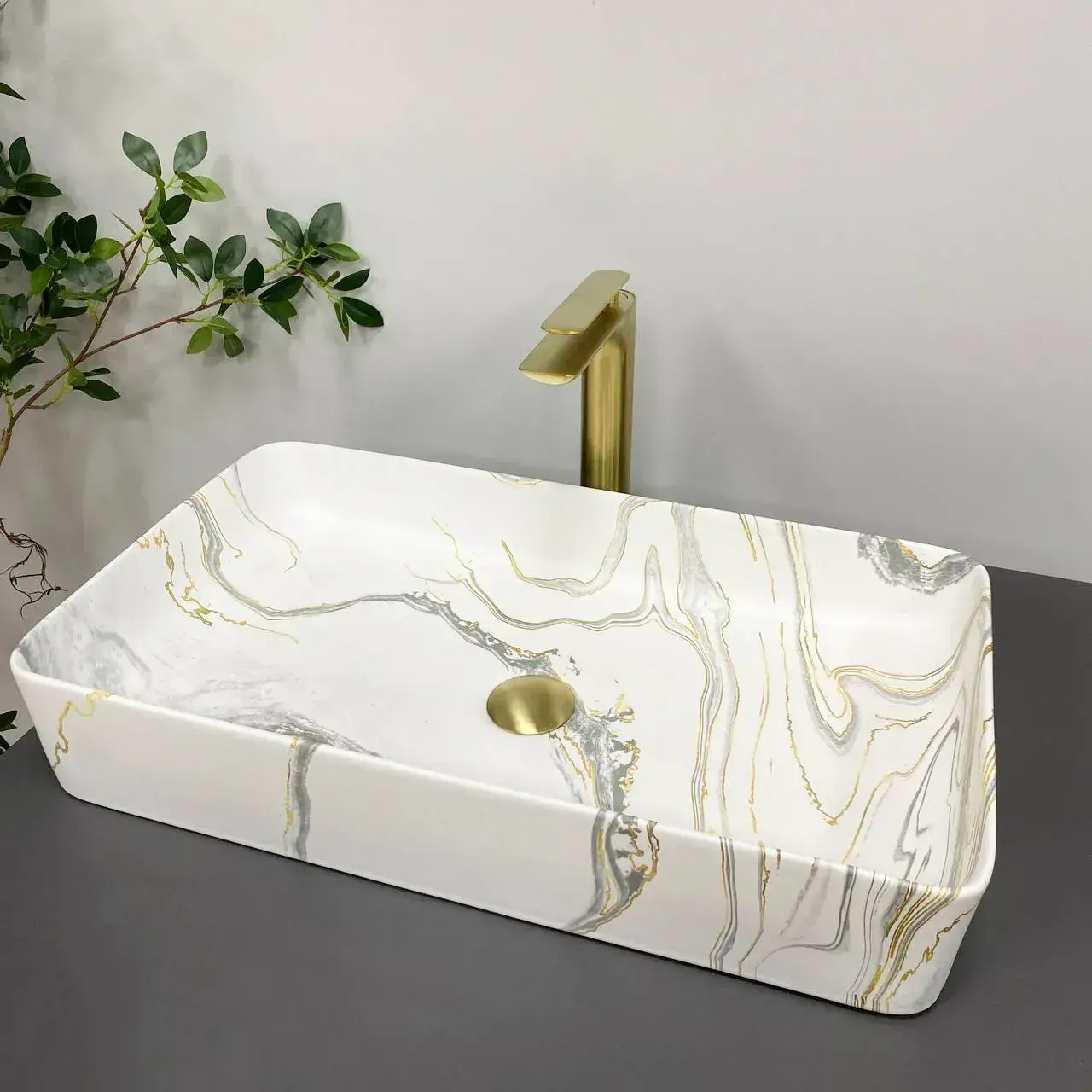 Умывальник накладной VBI Triest 615х350 прямоугольный, с узором (VBI-012705)