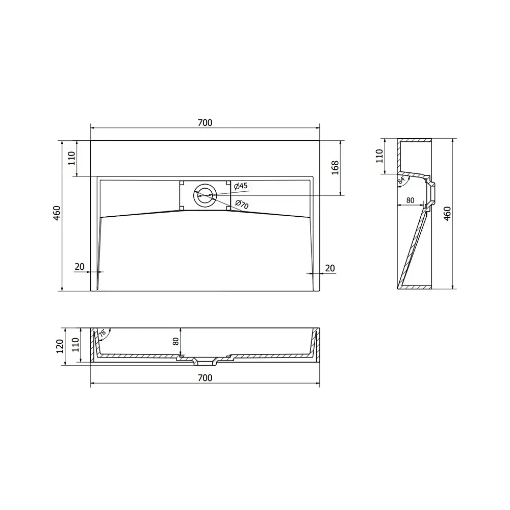 | Длина умывальника, мм | 700 |