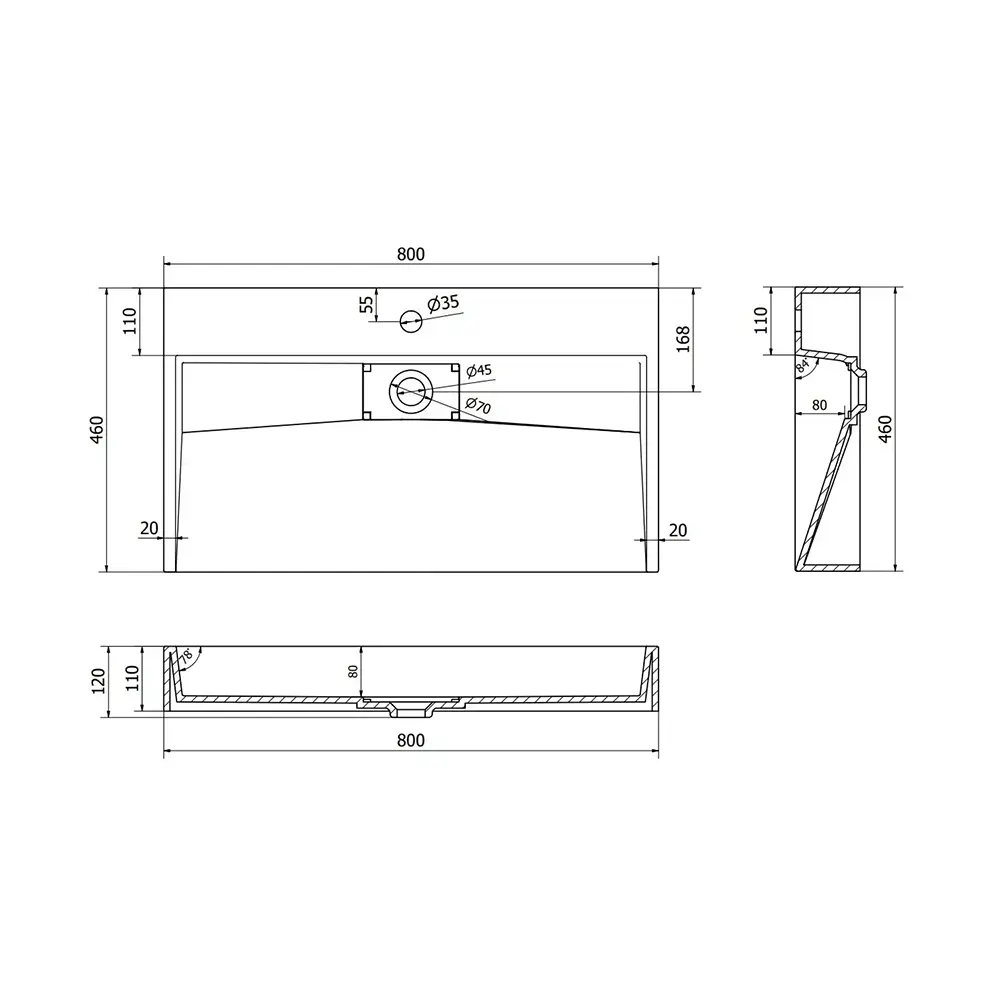 Умывальник подвесной VBI Este 800×460 1/О прямоугольный, белый (VBI-019913)