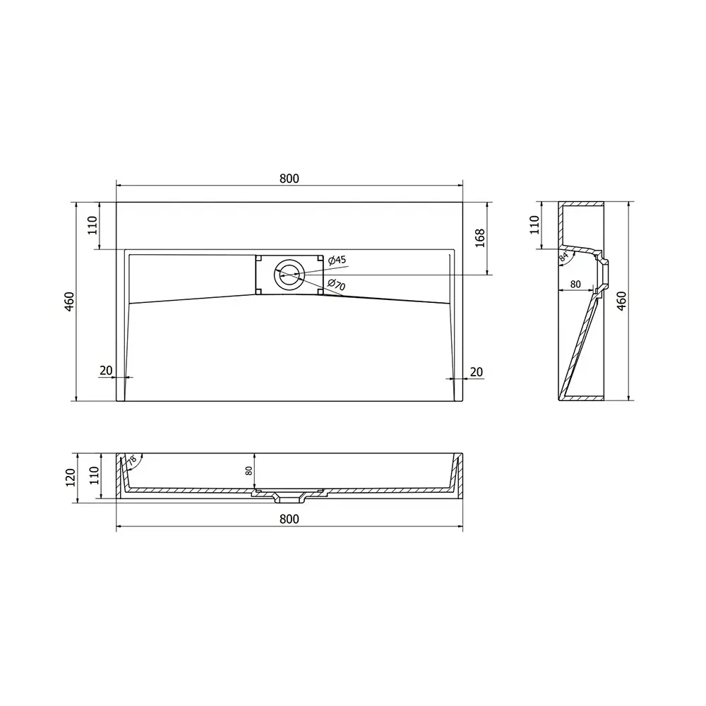 Умывальник подвесной VBI Este 800×460 прямоугольный, чёрный (VBI-019916)