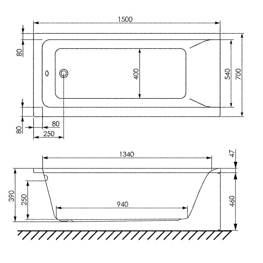 Ванна акриловая Eger Tisza 150×70 прямоугольная, белая глянцевая (588-2115)