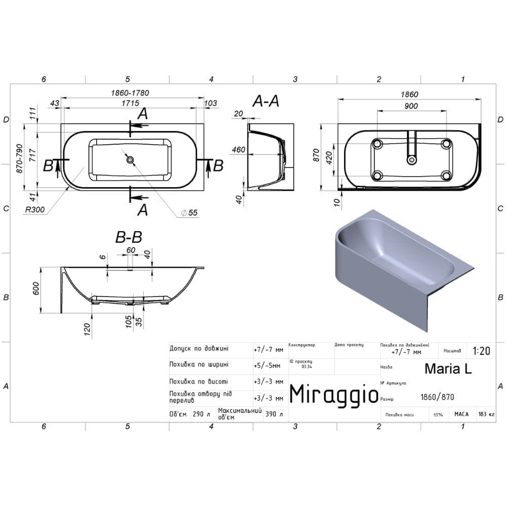 | Ширина ванны, мм | 870 |
