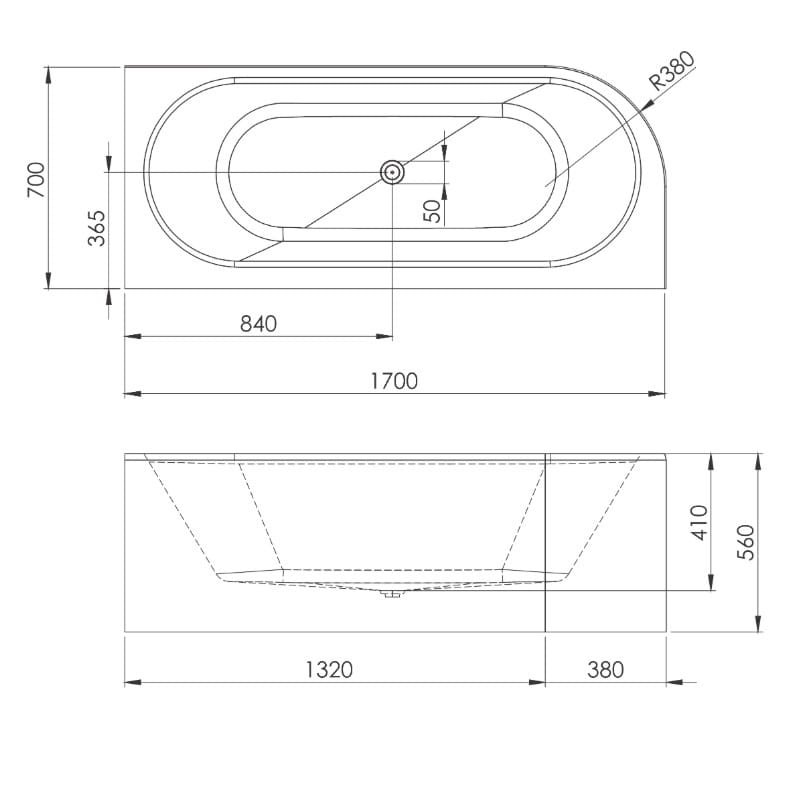 Ванна акриловая VOLLE Afrodita 170×70 правый угол, белая глянцевая (12-22-878R)