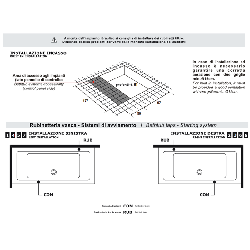 | Комплектация | Ванна, Сифон, Гидромассажные форсунки: 18 шт, Смеситель Paffoni Light MAX, Стабилизатор |
