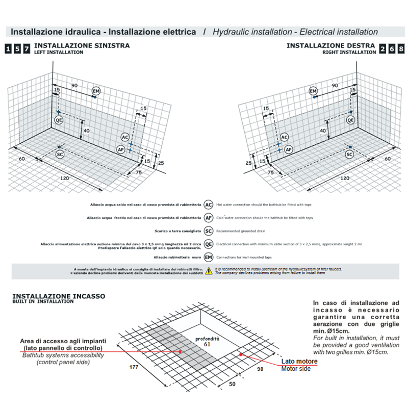 | Дополнительные характеристики | Аэромассажные форсунки: 18 штук, Гидромассажные форсунки: 6 штук, Мощность двигателя аэромассажа: 0,90 л.с., Мощность двигателя гидромассажа: стандарт – 0,80 л.с., 4 мини-форсунки – 1,00 л.с., Напряжение: 220 В, Потребляемая мощность аэромассажа: 700 Вт, Потребляемая мощность гидромассажа: стандарт – 810 Вт, 4 мини-форсунки – 930 Вт, Стабилизатор температуры (подогрев): 1300 Вт, Частота: 50 Гц |
